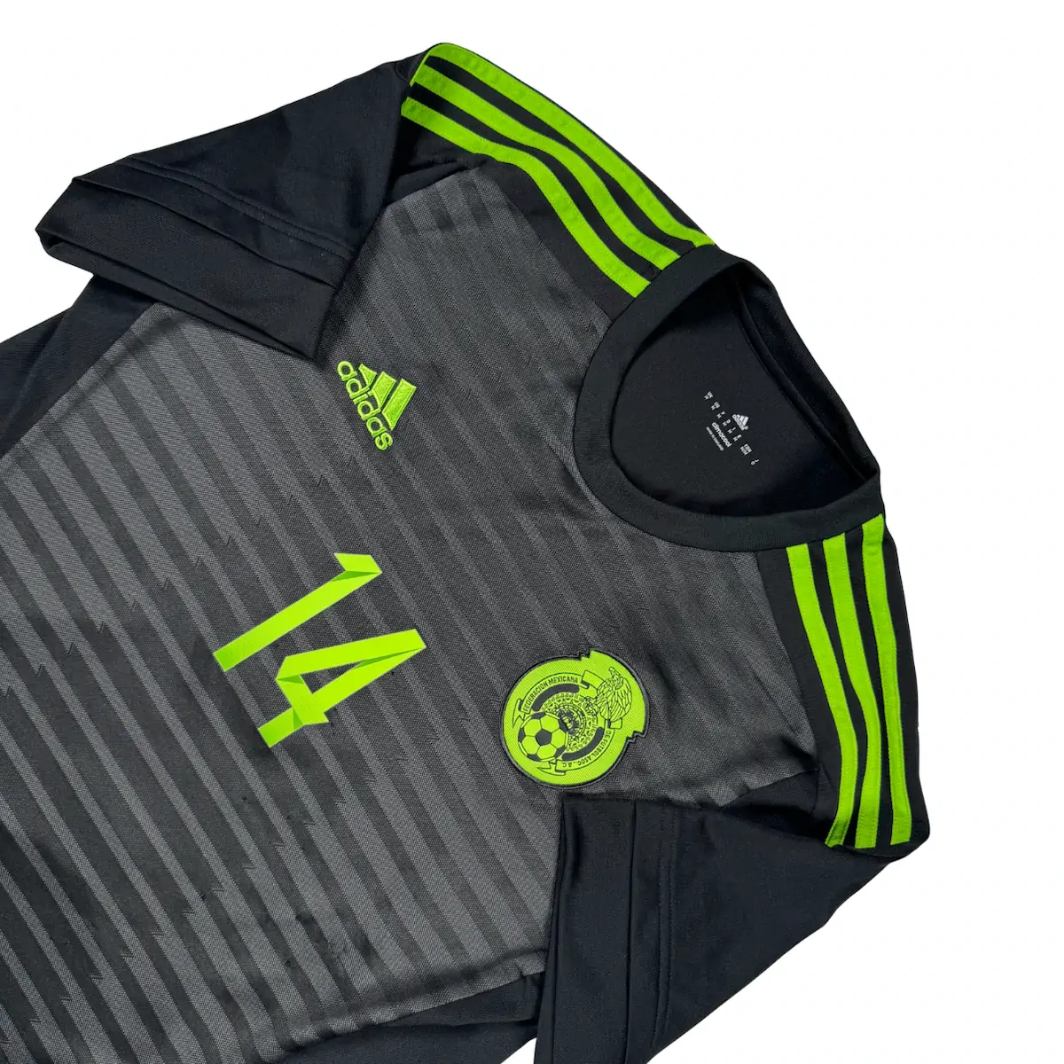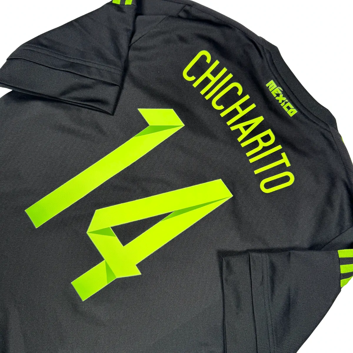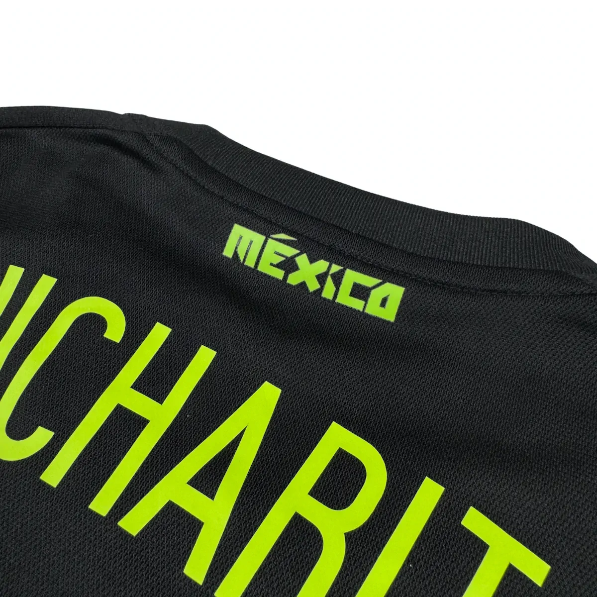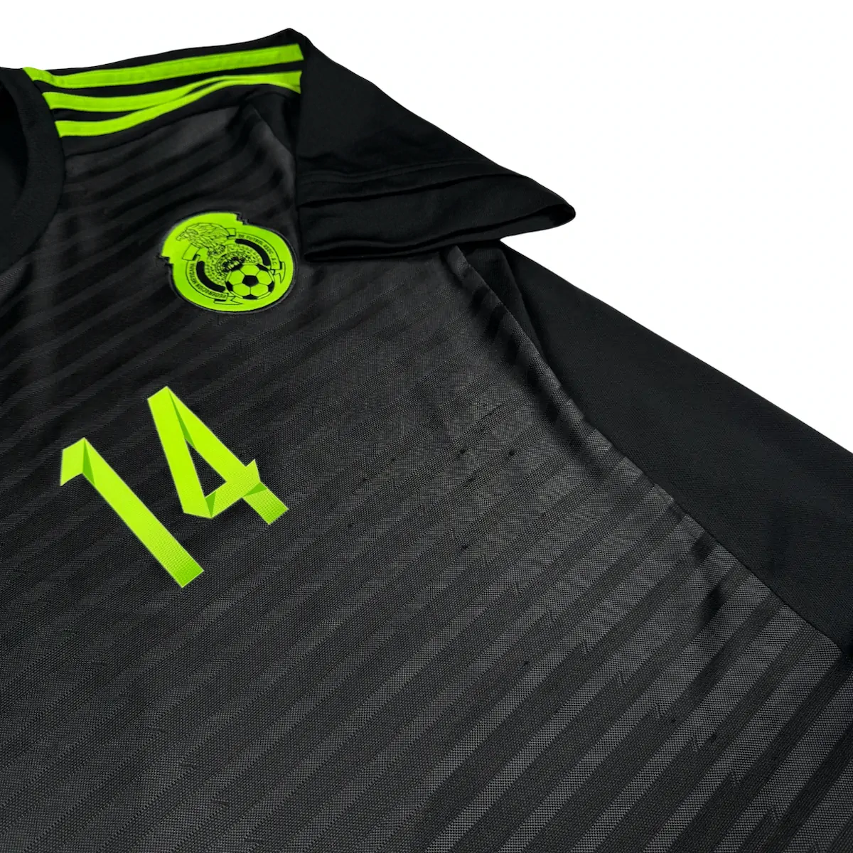 Note IFS : 9/10 – Maillot du Mexique, oui c’est bien le domicile en version noire, avec un design incroyable et le drapeau mexicain discret sur le bas du maillot. Flocage vert de Javier Hernández aka Chicharito, rendu exceptionnel, franchement 10/10 pour le flow. Une pièce qui claque et qui ne passe jamais inaperçue.