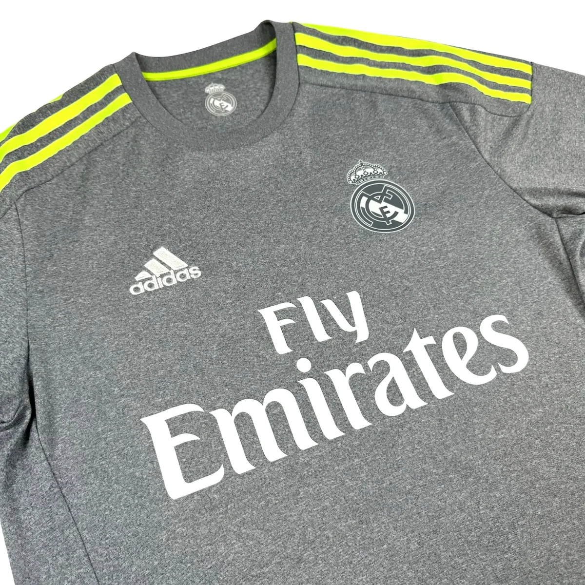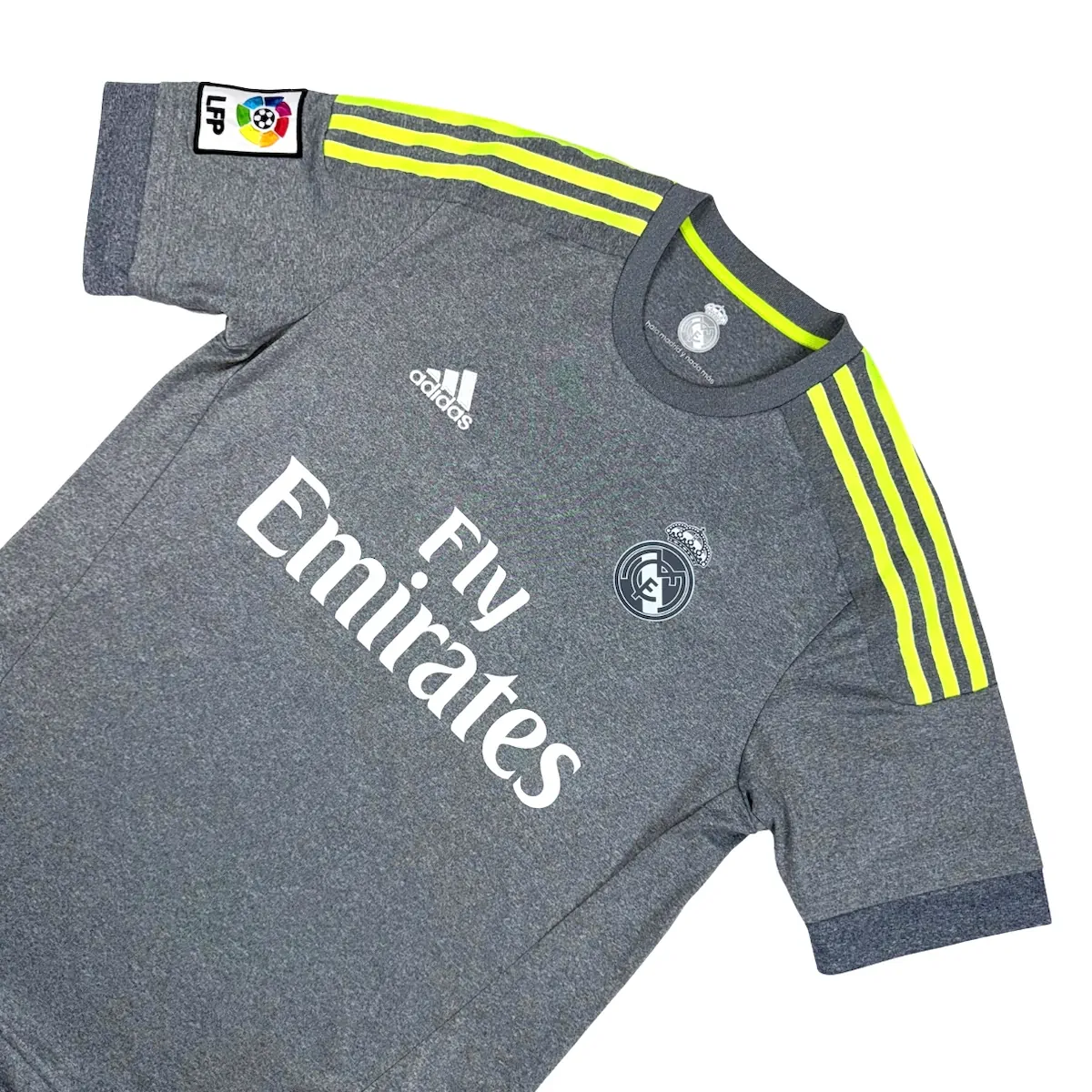 Note IFS : 10/10 – Parfait, ce maillot est comme neuf. La matière est bien agréable au porté, comme un t-shirt de tous les jours. L’écusson de Madrid est floqué et les bandes Adidas sont comme neuves. Une superbe maillot authentique qui fait penser à CR7, Zizou et compagnie.