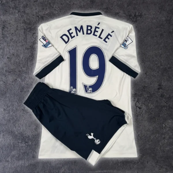 Note IFS : 9/10 – Ensemble complet des Spurs floqué Moussa Dembélé, avec short assorti et patchs Premier League officiels. Set rare et complet d’un joueur incroyablement sous-coté, symbole du milieu élégant et puissant de Tottenham version Pochettino. Une vraie pièce pour les fans qui savent reconnaître le talent discret.