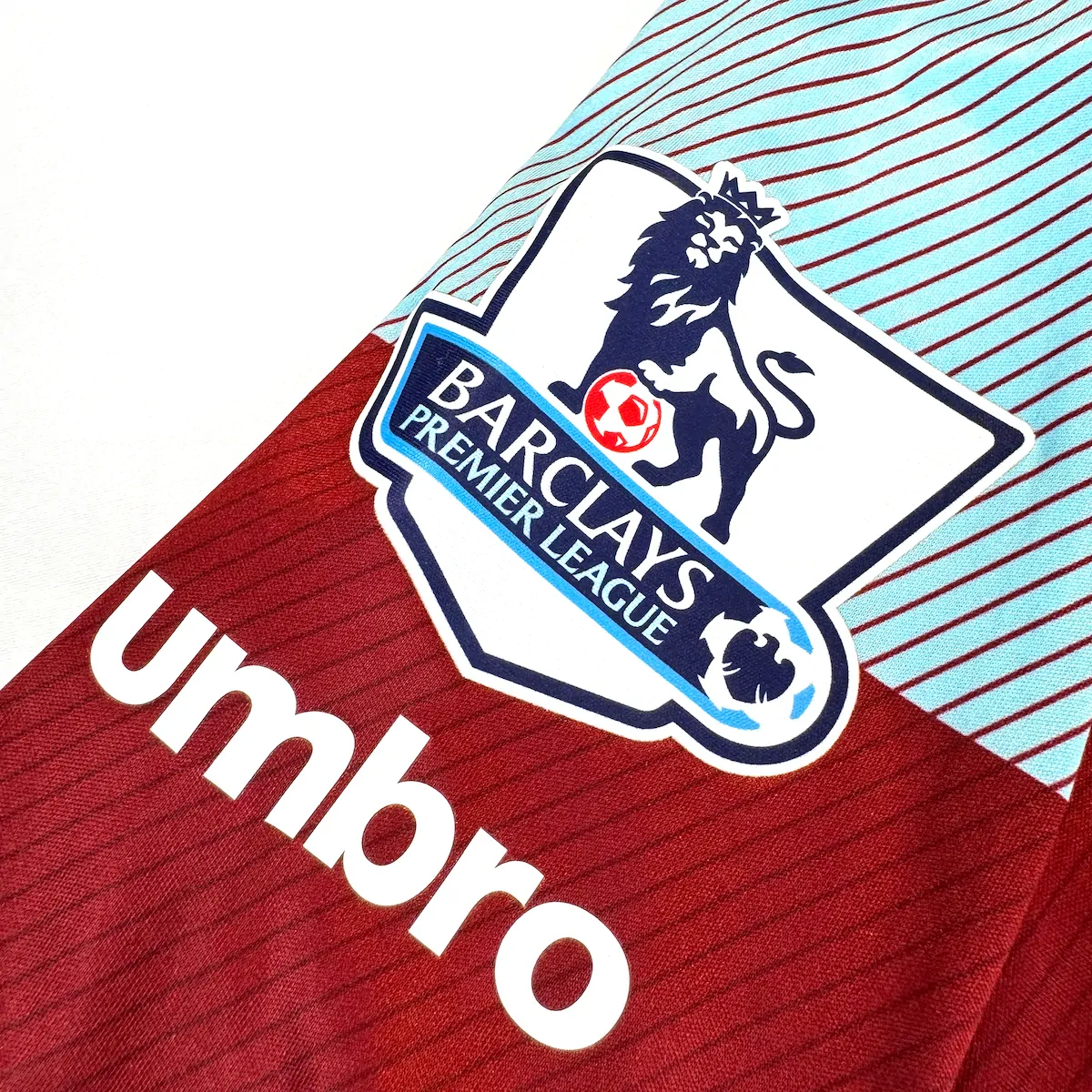Note IFS : 9/10 – Excellent. Rare en manches longues, ce maillot authentique Umbro est magnifique de par son flocage et son design. Patchs officiels de la Premier League sur les manches en parfait état !