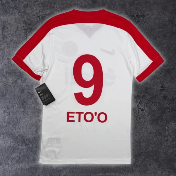 Note IFS : Neuf + étiquettes – Maillot peu commun de l’Antalyaspor saison 2016/17, version extérieure floqué Samuel Eto’o. Une pièce originale pour les fans du joueur ou les amateurs de maillots exotiques ! Eto’o, légende du Barça et de l’Inter, a marqué cette aventure turque de son empreinte.