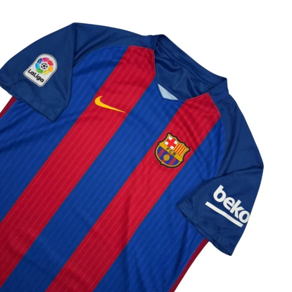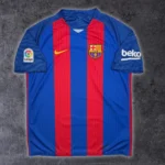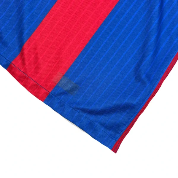 Note IFS : 9/10 – Maillot vintage du Barça en très bonne condition. La petite étiquette en bas s’est décollée, mais tout le reste est intact. Version sans sponsor Qatar Airways, plus épurée et souvent préférée par les puristes. Un maillot qui évoque forcément Messi à son prime !