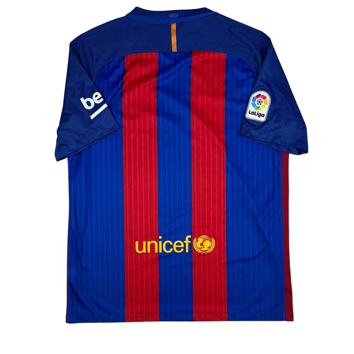 Note IFS : 9/10 – Excellent, le maillot est comme neuf hormis la taille effacée dans la nuque (mais invisible au porté) et l’étiquette en bas qui est manquante. Simple et efficace, Nike réussi son pari ! On pense à Messi et ses 53 buts… Stratosphérique.