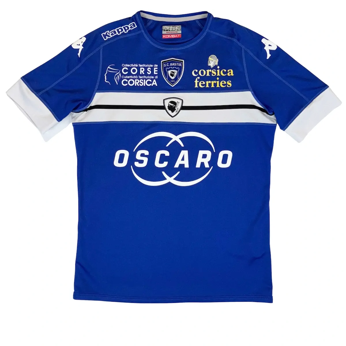 Note IFS : 9/10 – Excellent état général, le sponsor est très légèrement marqué tout comme le sponsor qui à un peu décoloré mais est toujours entier ! L’ensemble est hyper bien conservé. Très rare pièce avec le flocage d’Allan Saint-Maximin lors de son unique saison à Bastia.