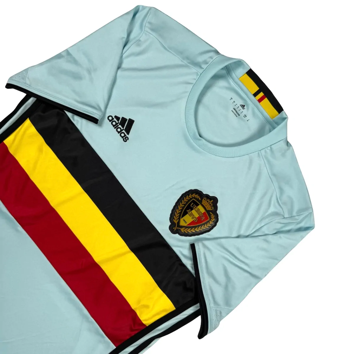 Note IFS : 9/10 – Excellent état général. Le fameux maillot « cycliste » des Diables Rouges, totalement original, a marqué les esprits et reste une pièce à part dans l’histoire de la sélection belge.