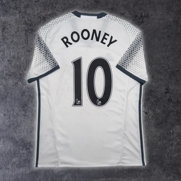 Note IFS : 9/10 – Excellent état général pour ce maillot de Manchester United floqué Rooney. Quelques traces discrètes sur le bas de la face avant, visibles uniquement selon la lumière. Le reste est impeccable : flocage intact, couleurs éclatantes. Une belle pièce pour les fans du club et de l’un des plus grands buteurs de son histoire.
