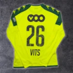 Note IFS : 7/10 – Maillot préparé/porté par Senne Vits au Standard de Liège. Le flocage a déteint, provoquant un gros transfert sur le maillot. Pièce unique malgré ce défaut, témoin de son passage chez les Rouches.