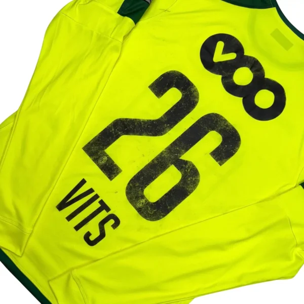 Note IFS : 7/10 – Maillot préparé/porté par Senne Vits au Standard de Liège. Le flocage a déteint, provoquant un gros transfert sur le maillot. Pièce unique malgré ce défaut, témoin de son passage chez les Rouches.