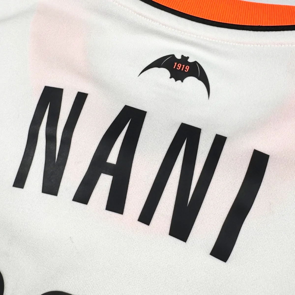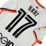 Note IFS : 9/10 – Ensemble complet du Valence CF floqué Nani, composé du maillot et du short assorti. Quelques traces légères sur l’avant du maillot, peu visibles, tandis que le short est en parfait état. Le flocage Nani, impeccable, donne tout son cachet à cette tenue devenue rare pour les fans des Ches.