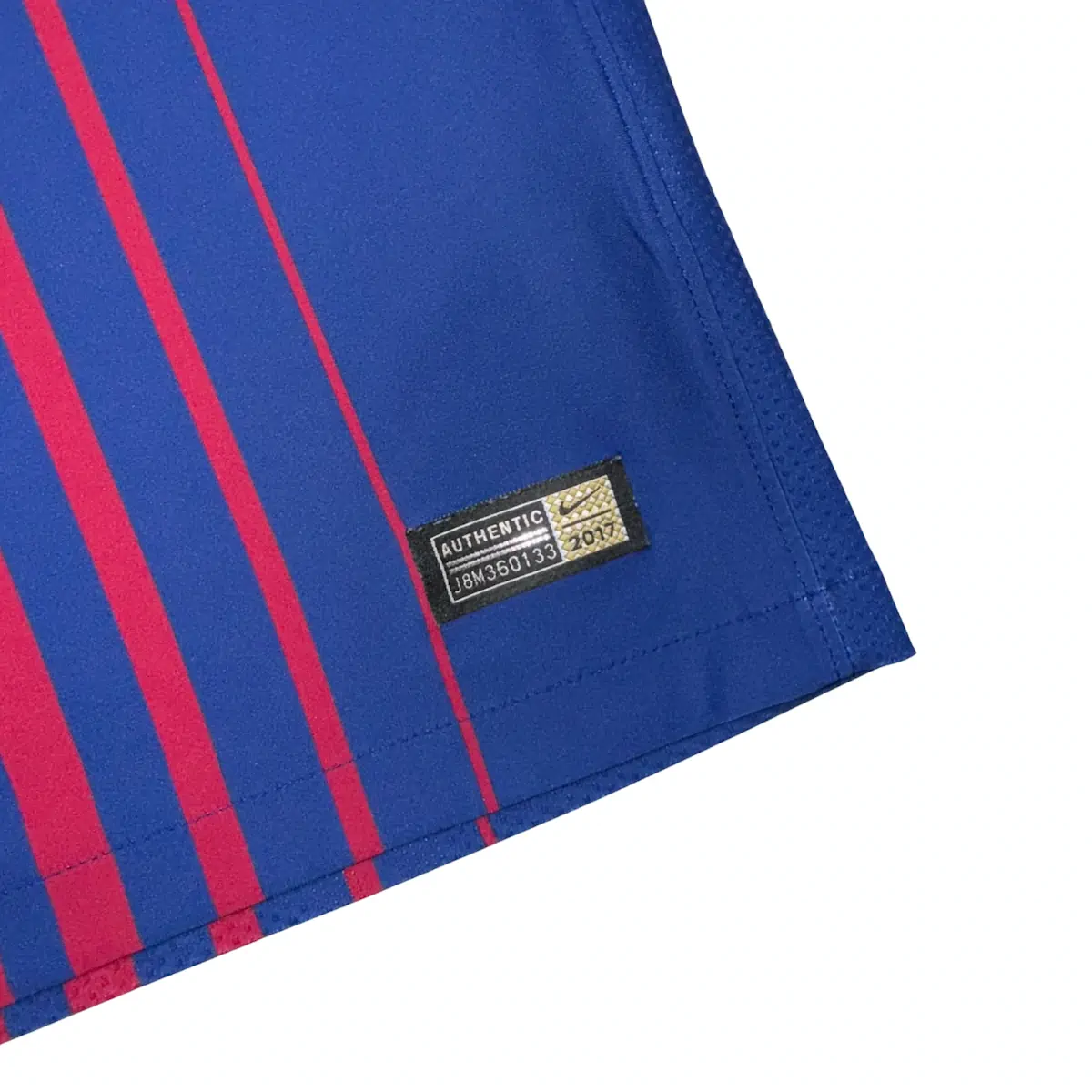 Note IFS : 9/10 – Excellente condition pour ce maillot domicile du Barça, version pro avec la technologie Aeroswift de Nike. Même coupe, mêmes détails, même confort que ceux portés sur le terrain : logos thermocollés, tissu ultra-respirant et fit plus ajusté. Une pépite vendue à 140€ à sa sortie en 2017.