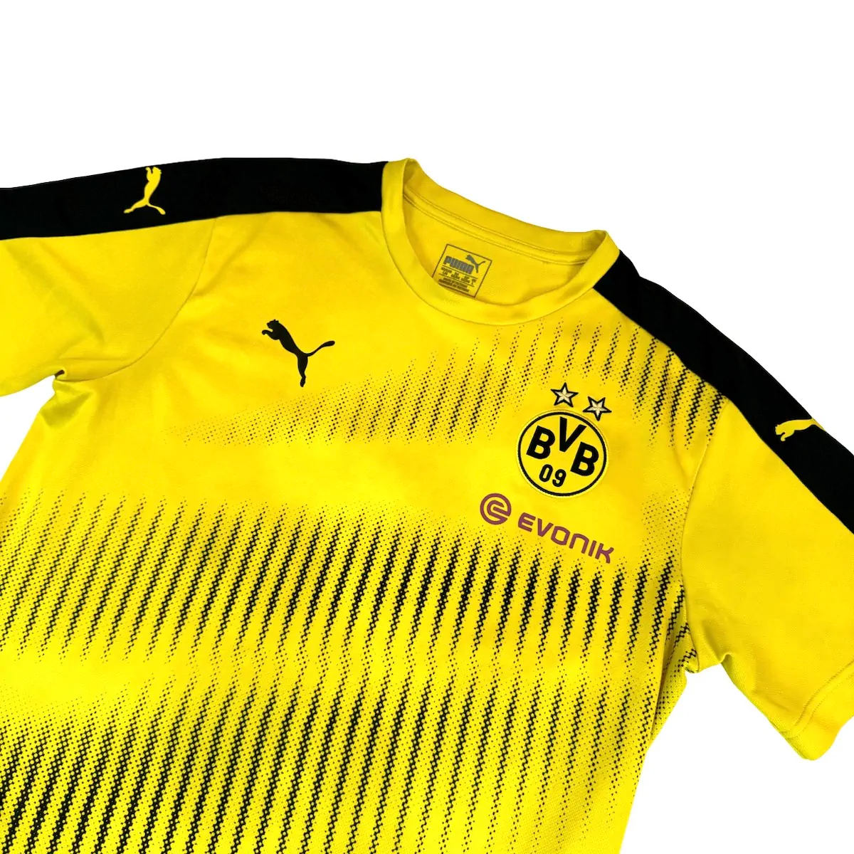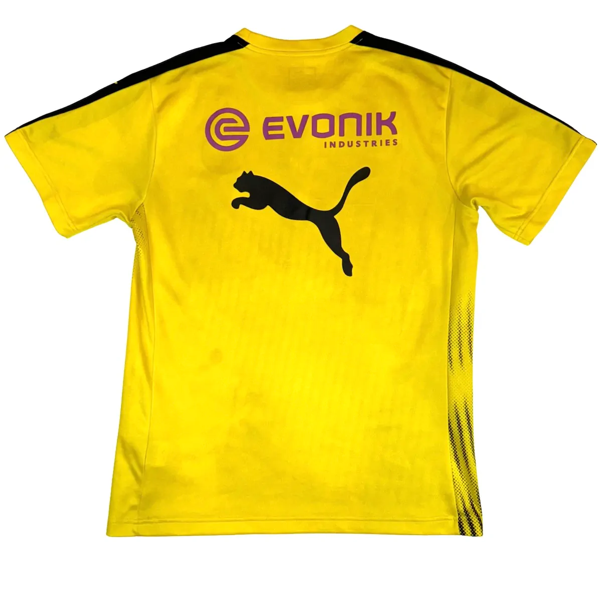 Note IFS : 8/10 – Très bon état général, quelques taches au dos sont à noter si on fait attention ainsi qu’un ou deux fils tirés. L’aspect général reste très bon pour ce maillot d’entrainement Puma. Ce maillot ravira tous les fans du BVB !