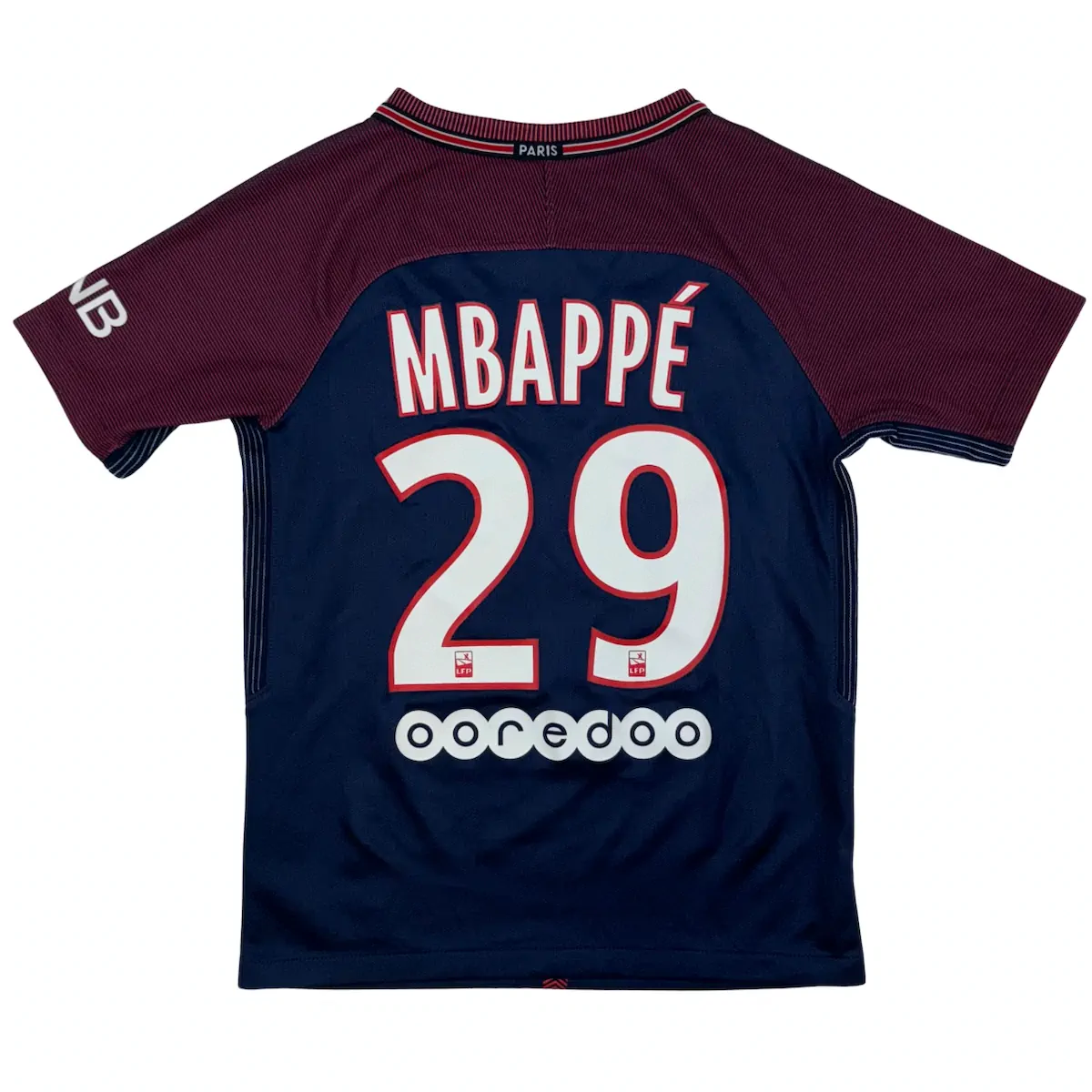 Note IFS : 10/10 – Parfait, le maillot en plus d’être rare est comme neuf. Il est rare car il s’agit du tout premier numéro de Kylian en pro avant de passer au numéro 7. Superbe maillot authentique Nike en taille 6-8 ans !