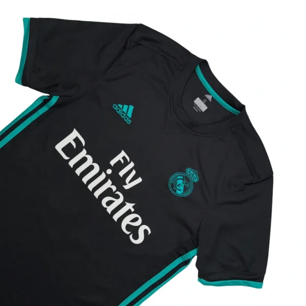 Note IFS : 10/10 – Parfait état pour ce sublime maillot extérieur du Real Madrid. Sponsor impeccable. Un maillot qui rappelle direct CR7, Benzema, et ici en l’occurrence, Gareth Bale.