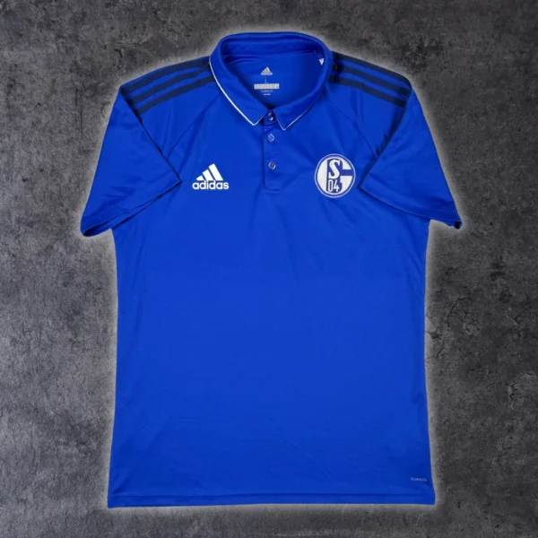 Note IFS : 9/10 – T-shirt d’entraînement de Schalke, état proche du 10/10 avec logo adidas thermocollé. Une pièce moderne et quasi neuve pour les fans des Königsblauen.