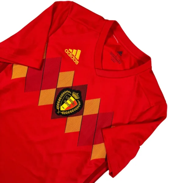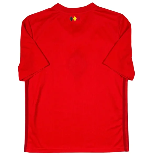 Note IFS : 9/10 – Maillot domicile de la Belgique en taille 13-14 ans, superbe création signée Adidas. Dernier modèle à arborer l’ancien écusson des Diables Rouges, il rappelle directement l’époque d’Hazard, De Bruyne et Kompany. Une pièce Iconic pour les fans de la génération dorée qui aurait du remporter la Coupe du monde 2018, oui on a le seum, logique.