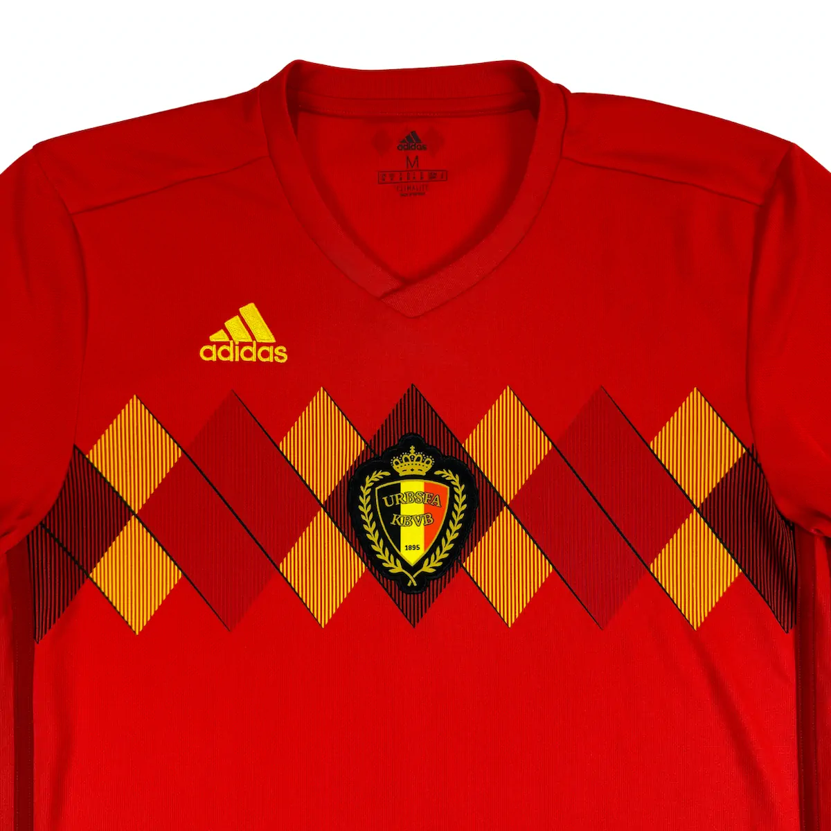Note IFS : 9/10 – Excellent état. Le maillot est très bien conservé. Sublime pièce par Adidas, la dernière avec l’ancien écusson des Diables Rouges ! On pense forcément à Hazard, De Bruyne et Vince Kompany.