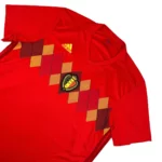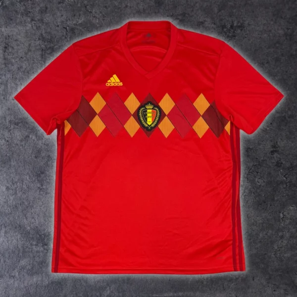 Note IFS : 9/10 – Maillot domicile des Diables Rouges très proche du parfait au niveau de la condition. Impossible de ne pas penser à notre fameuse génération dorée lorsque l’on voit ce maillot. Oui, nous aurions dû remporter cette Coupe du monde… on n’en démordra pas !