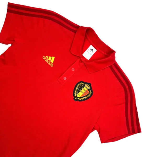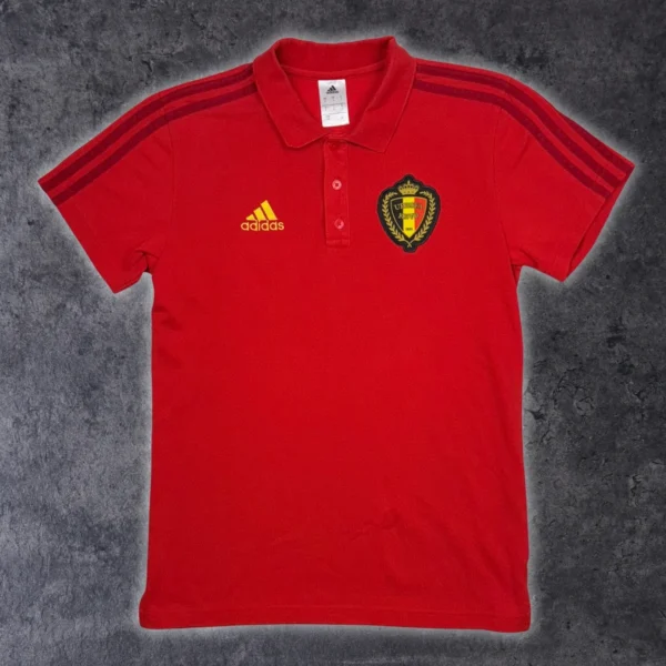 Note IFS : 9/10 – Polo Adidas des Diables Rouges en bonne condition. Facile à porter avec un jeans par exemple. Seule une tache sur la face avant est à mentionner.