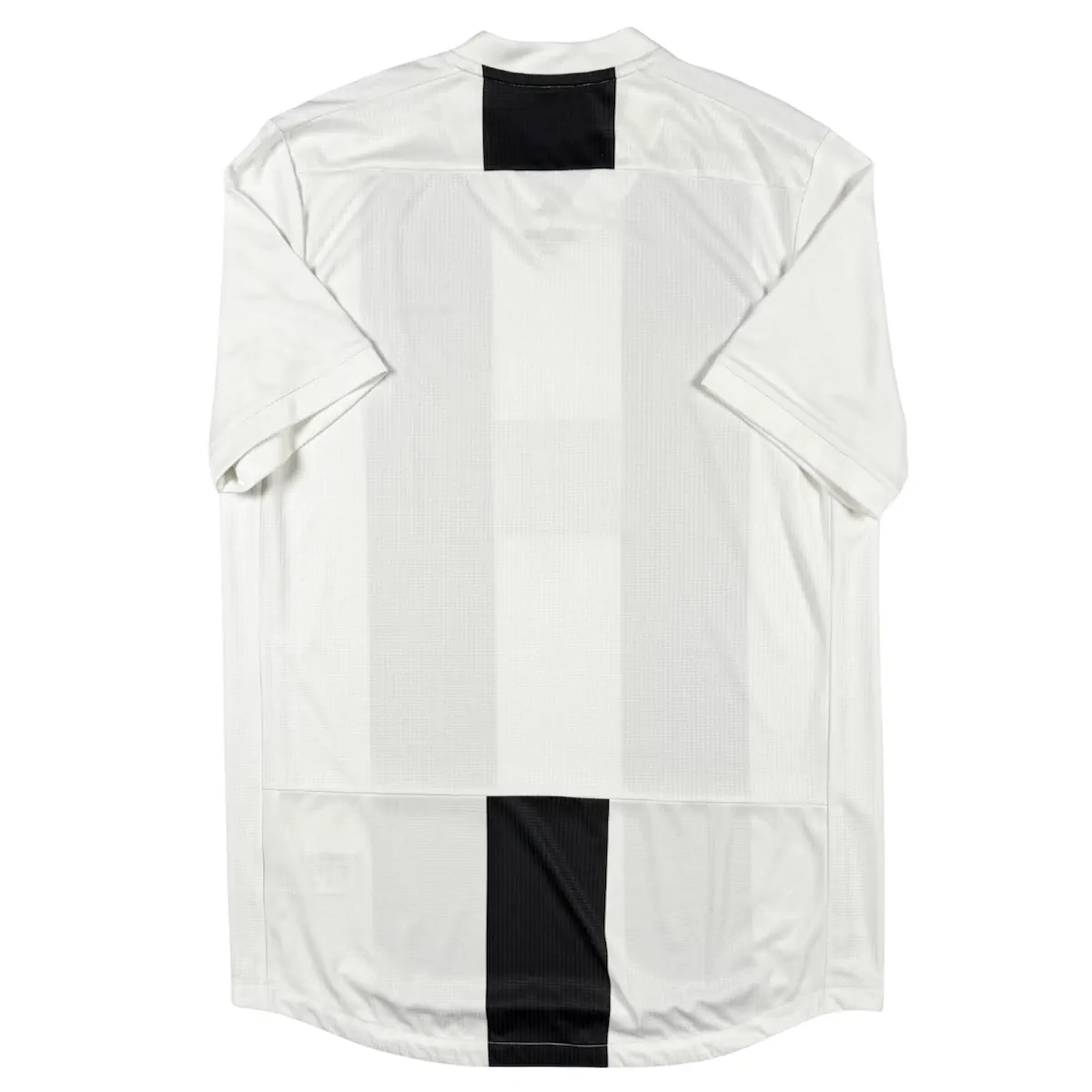 Note IFS : 9/10 – Maillot de la Juventus en excellent état général, version pro avec quelques discrètes bouloches. Modèle player identique à celui porté par les pros, équipé de la technologie Climachill d’Adidas pour un textile plus aéré et technique. Logos thermocollés, confort haut de gamme, et un maillot qui valait 150 € à sa sortie.
