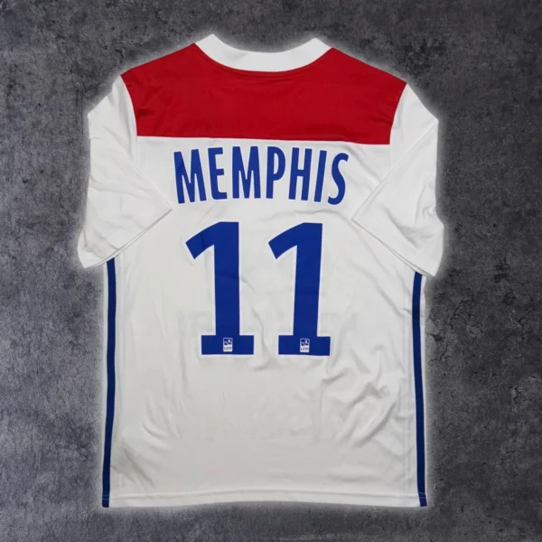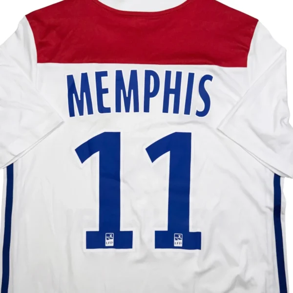 Note IFS : 10/10 – Parfaite condition pour ce maillot de l’OL floqué Memphis Depay (qui choisit de faire floquer son prénom à cause d’une embrouille avec son père pour l’anecdote). Taille 13/14 ans.