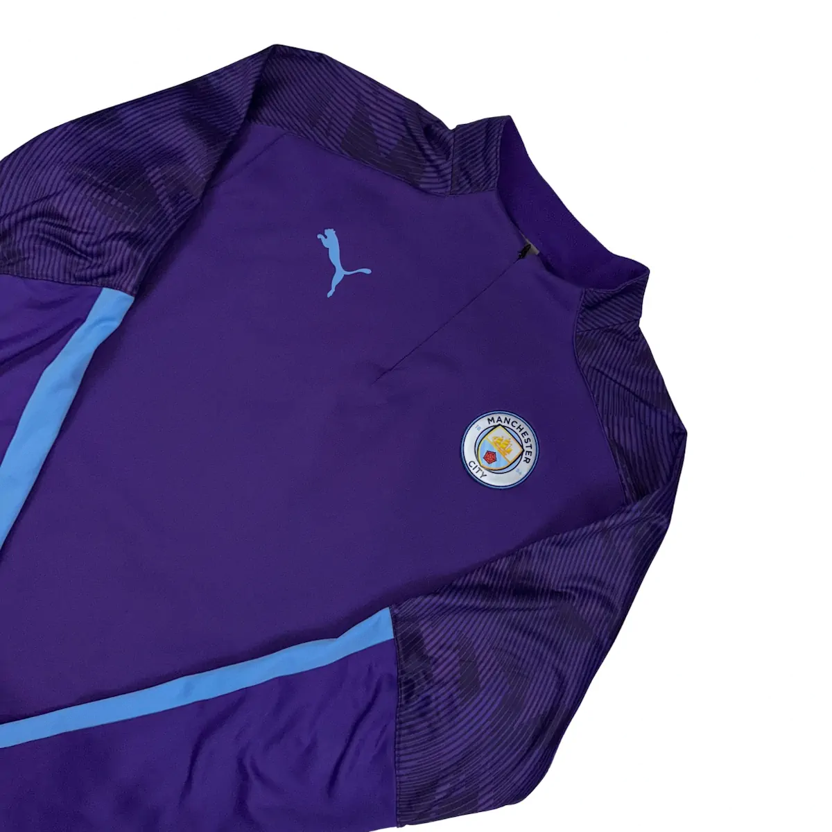 Note IFS : 9/10 – Sweat d’entrainement 1/4 zip de City par Puma en excellent état. Les logos sont floqués et sont parfaits.