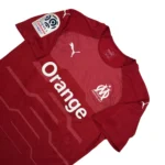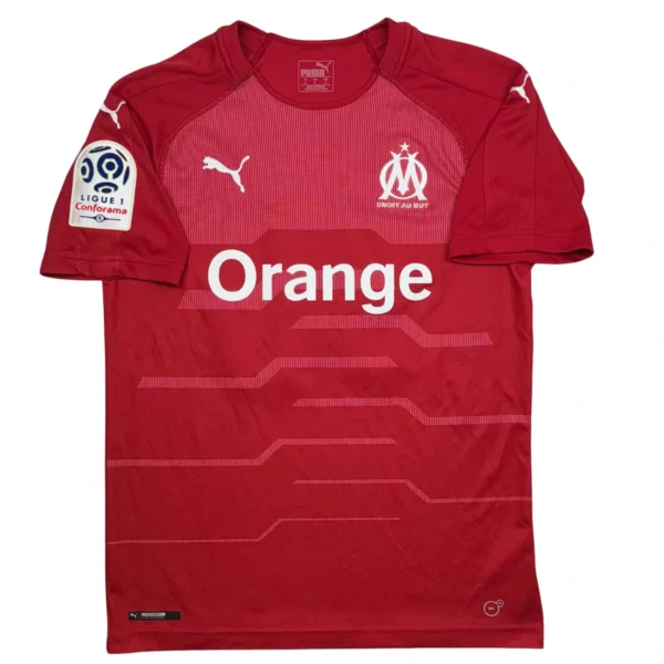 Note IFS : 9/10 – Excellente condition pour ce maillot de l’OM datant de 2018. Quelques bouloches sur l’avant, patch Ligue 1 en feutrine et flocage de Steve Mandanda dans le dos. Un vrai maillot floqué d’une légende du club et l’un des plus grands gardiens de l’histoire de la Ligue 1.