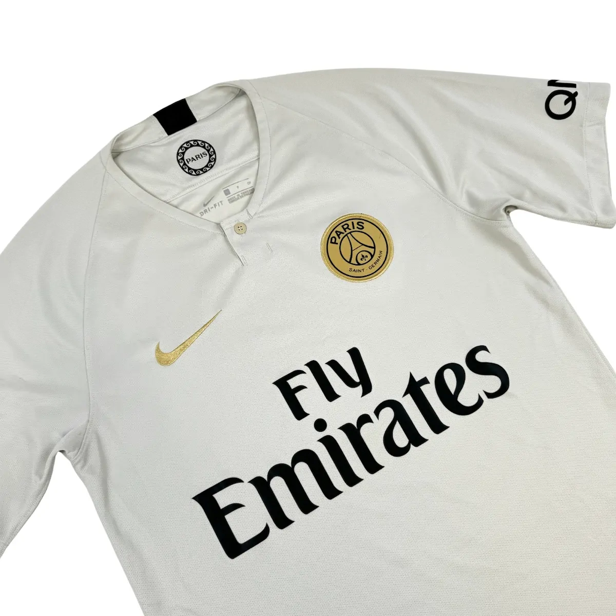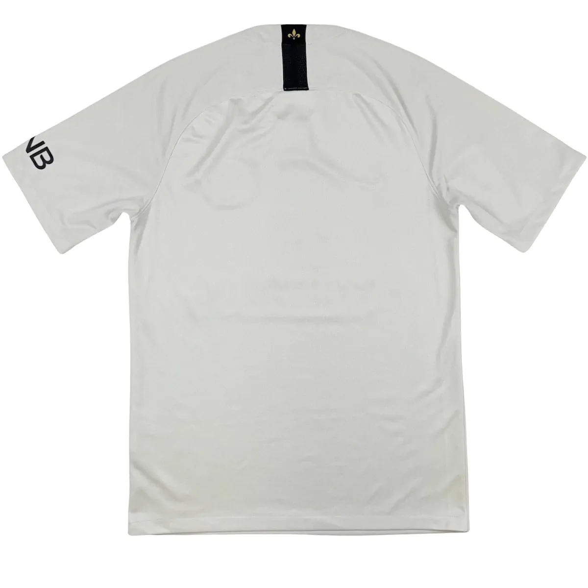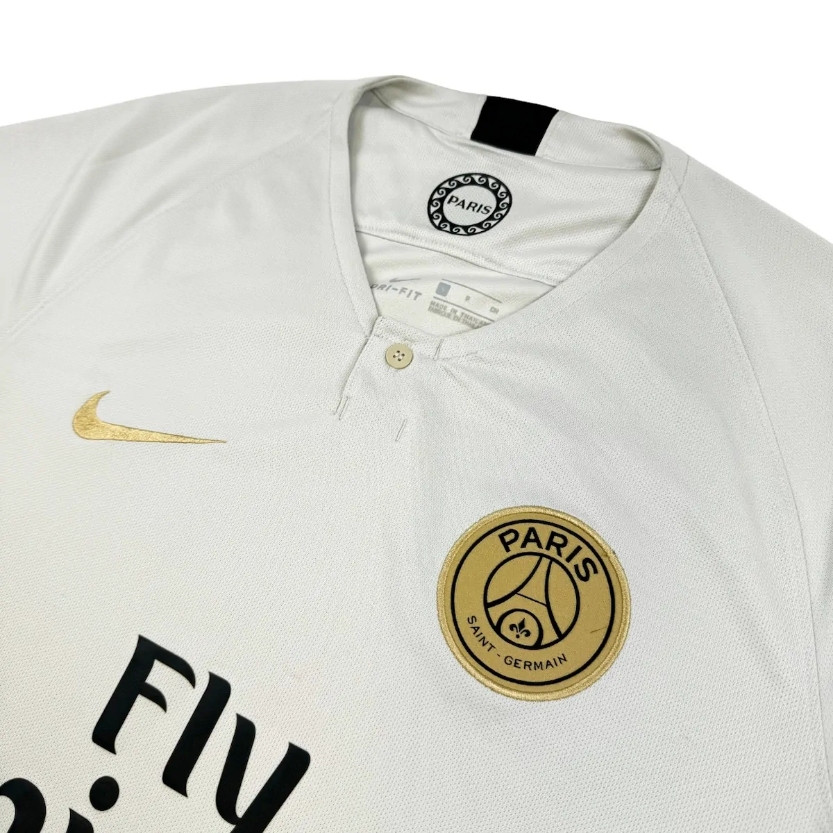 Note IFS : 8/10 – Très bon état général, quelques fils tirés sont à noter ainsi qu’un mini trou près de l’écusson. L’ensemble du maillot est bien conservé. Nike et Paris, une longue histoire d’amour !