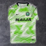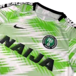 Note IFS : 9/10 – Maillot d’avant-match du Nigéria en excellent état, seule une petite partie légèrement décousue en bas. Le reste est impeccable, tissu, flocages et couleurs parfaitement conservés.