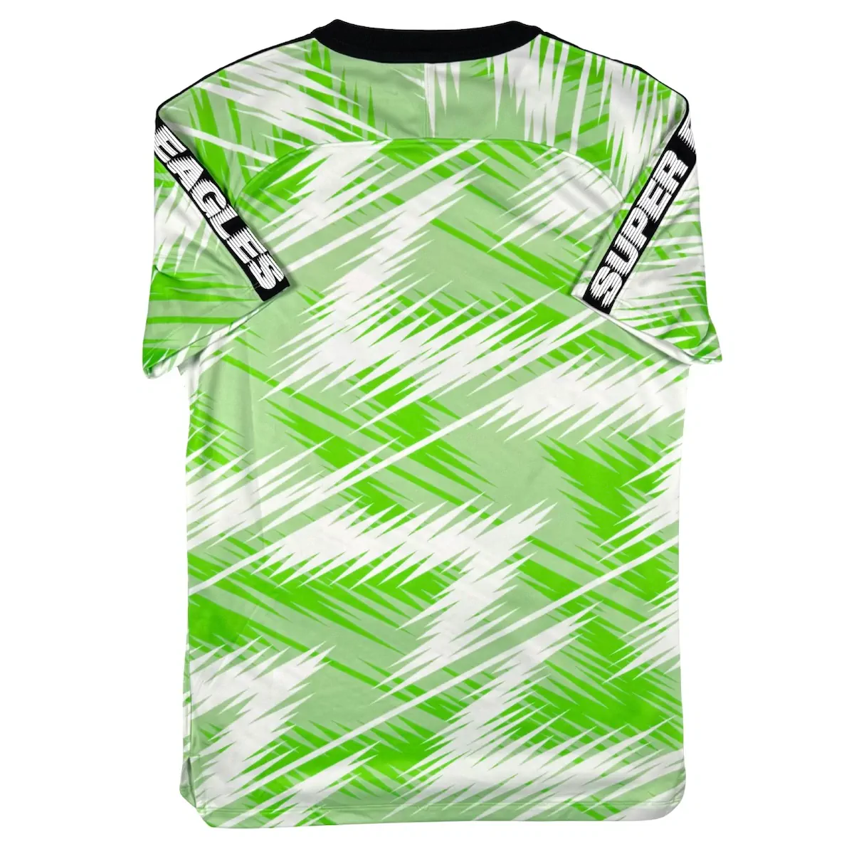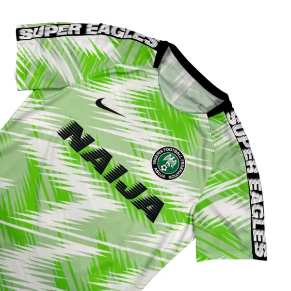 Note IFS : 9/10 – Maillot d’avant-match du Nigéria en excellent état, seule une petite partie légèrement décousue en bas. Le reste est impeccable, tissu, flocages et couleurs parfaitement conservés.
