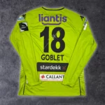 Note IFS : 10/10 – Maillot préparé pour le match Zulte Waregem – Cercle Brugge (extérieur). Bien que non porté en match, il a été préparé pour l’événement, certains joueurs peuvent des fois utiliser ces maillots pour l’échauffement. Tous les sponsors et le patch Pro League sont présents. Signature du joueur à l’avant et à l’arrière du maillot. Une pièce de collection pure, à exposer fièrement… et non à porter, sauf si tu veux passer pour un zozo !