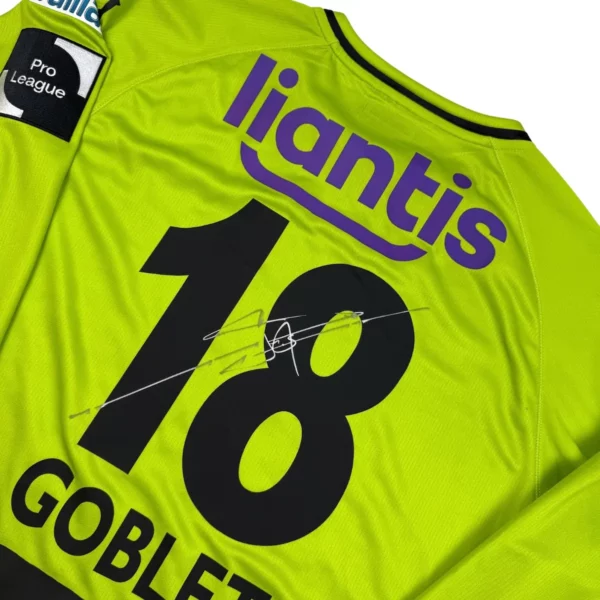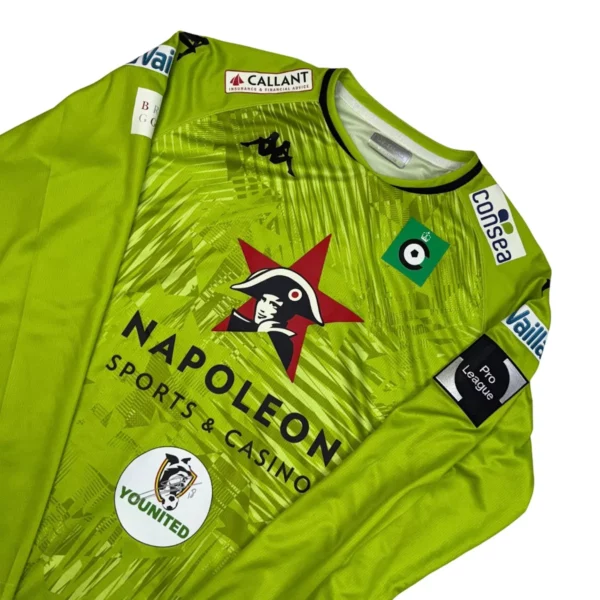 Note IFS : 10/10 – Maillot préparé pour le match Zulte Waregem – Cercle Brugge (extérieur). Bien que non porté en match, il a été préparé pour l’événement, certains joueurs peuvent des fois utiliser ces maillots pour l’échauffement. Tous les sponsors et le patch Pro League sont présents. Signature du joueur à l’avant et à l’arrière du maillot. Une pièce de collection pure, à exposer fièrement… et non à porter, sauf si tu veux passer pour un zozo !