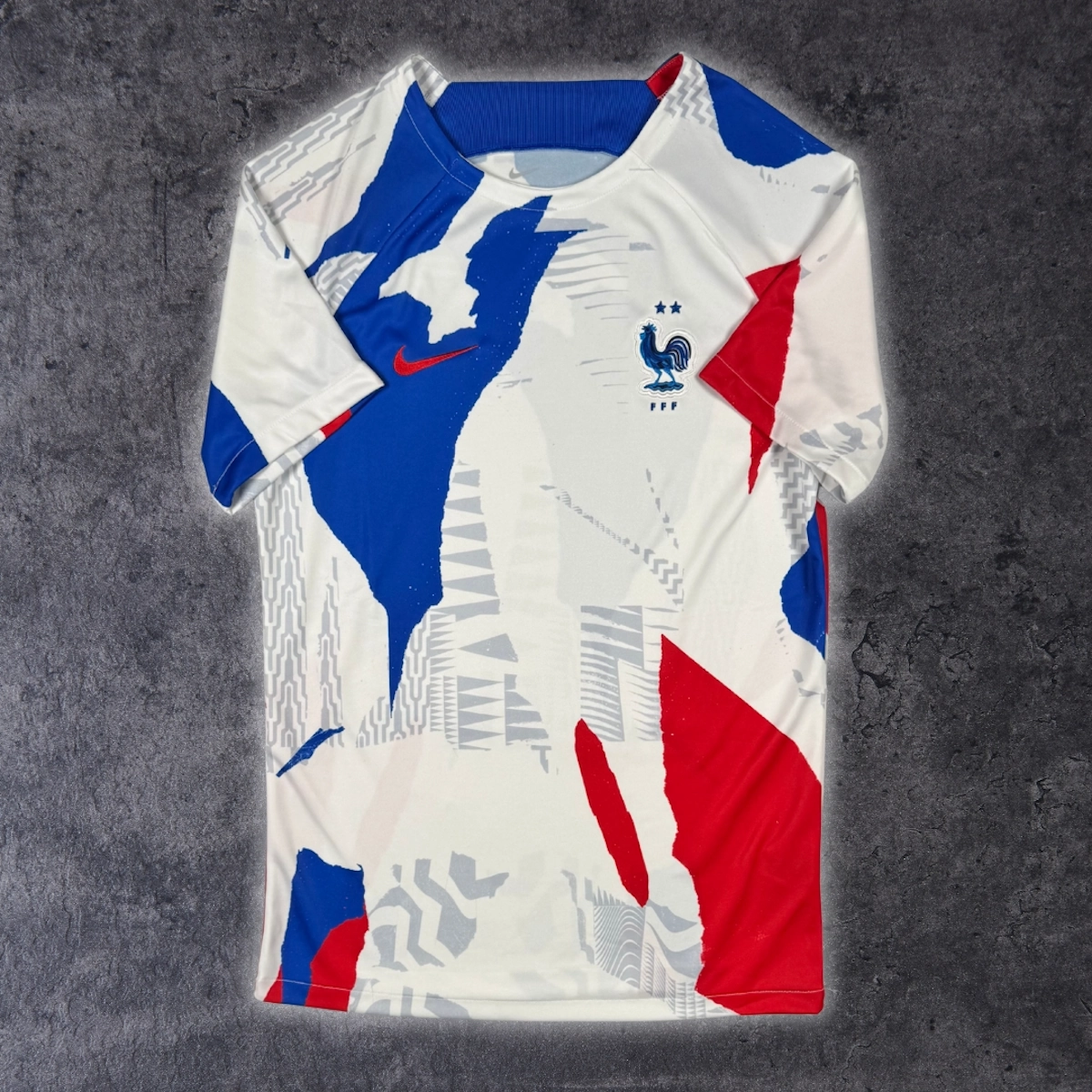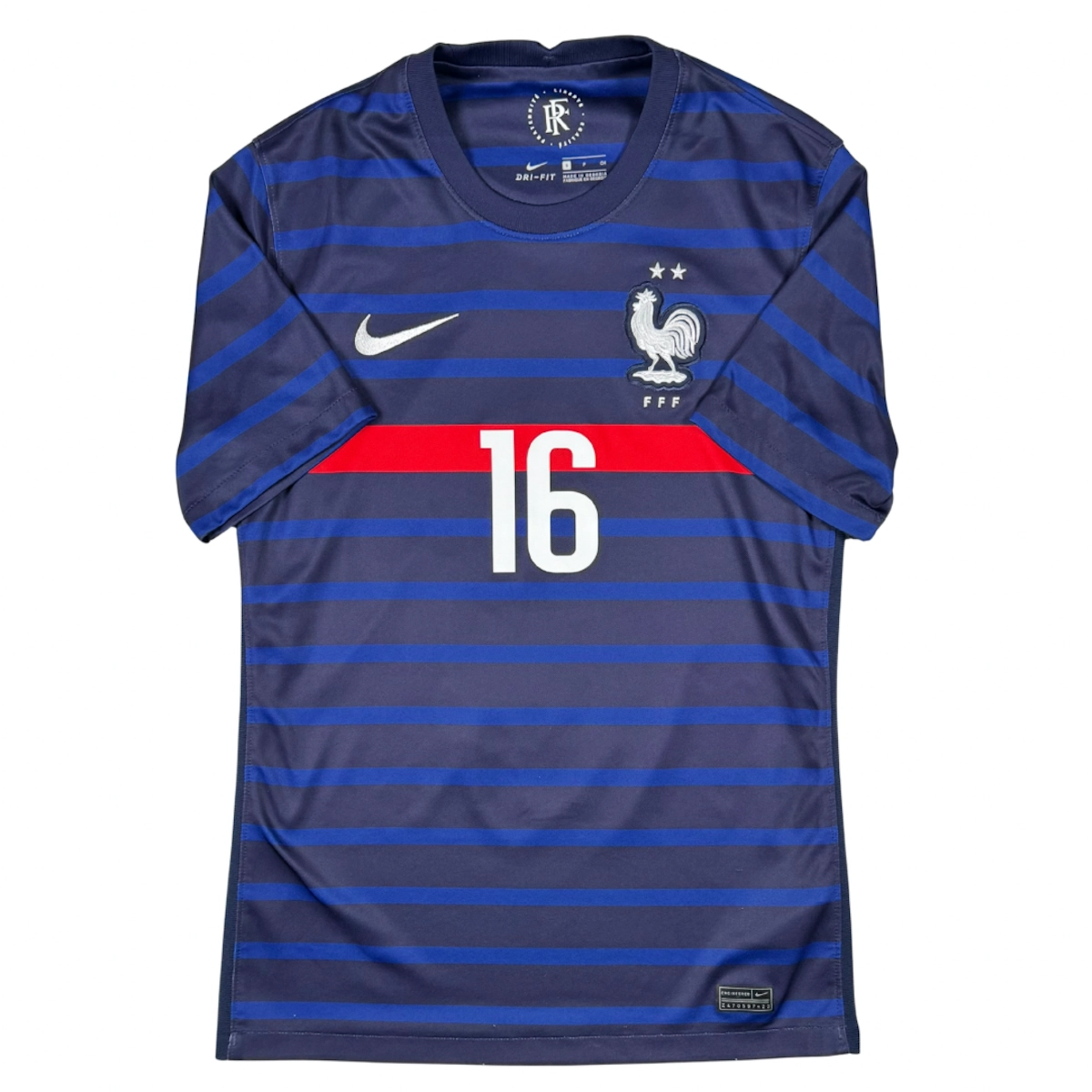 Note IFS : 9/10 – Maillot domicile de l’équipe de France floqué du gardien Mandanda, en excellente condition. Flocage impeccable, couleurs bien conservées et aucun défaut à signaler, une pièce propre et élégante pour les fans des Bleus et de l’un des portiers les plus emblématiques de sa génération.