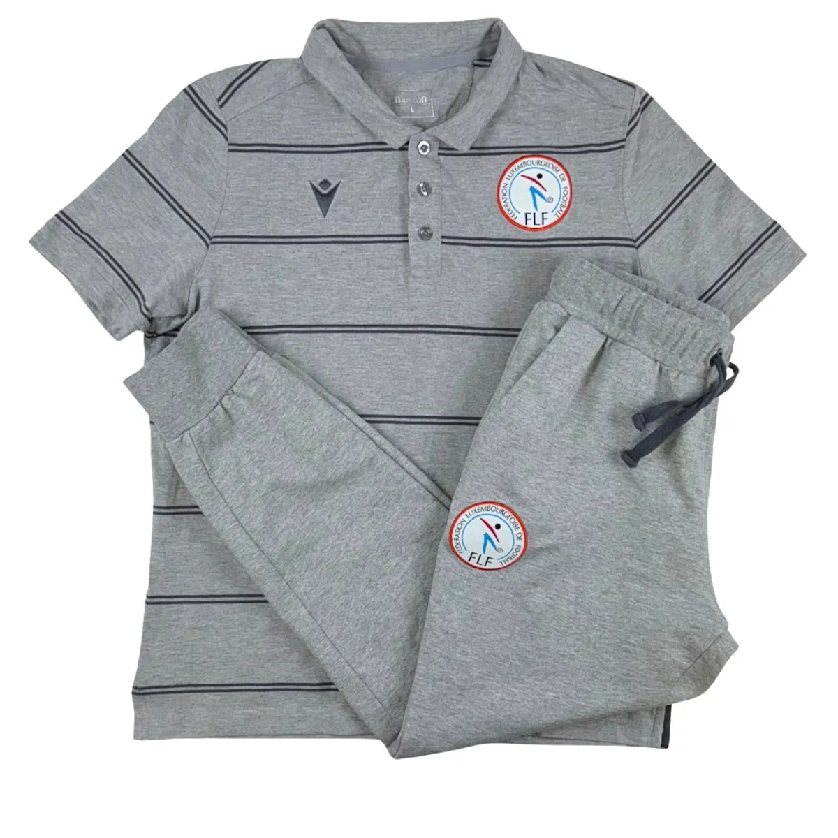 Note IFS : 9/10 – Excellent état pour cet ensemble complet polo et pantalon de la FLF. Matière coton agréable à porter ! Macron à la baguette.