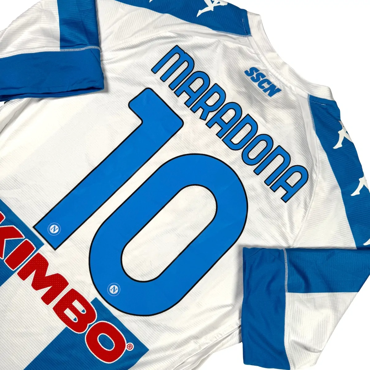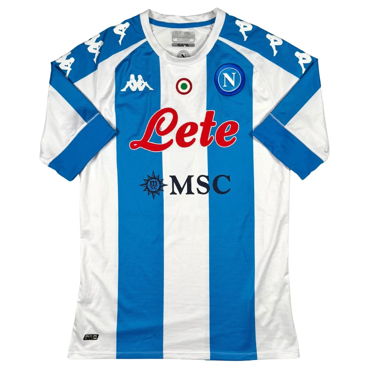 Note IFS : 10/10 – Version pro du quatrième maillot du Napoli, conçu avec un design argentin pour rendre hommage à Maradona. Modèle identique à celui porté par les joueurs, avec la coupe plus ajustée typique des versions pro et de Kappa. État comme neuf, textile propre et de qualité. Une pièce spéciale, symbolique, et très recherchée par les fans du Napoli et de El Diego.