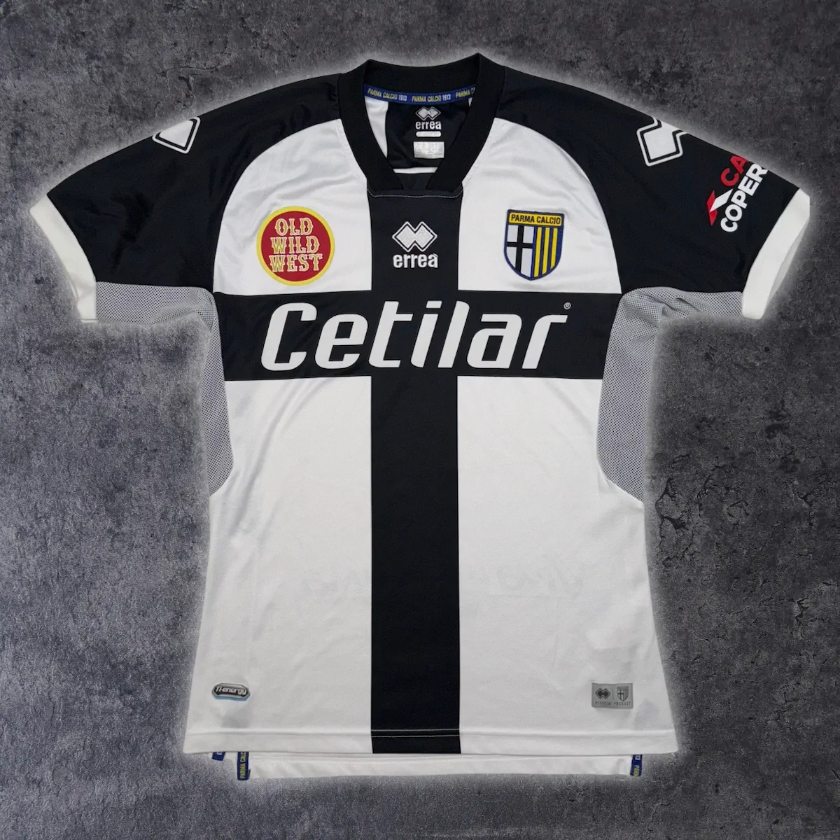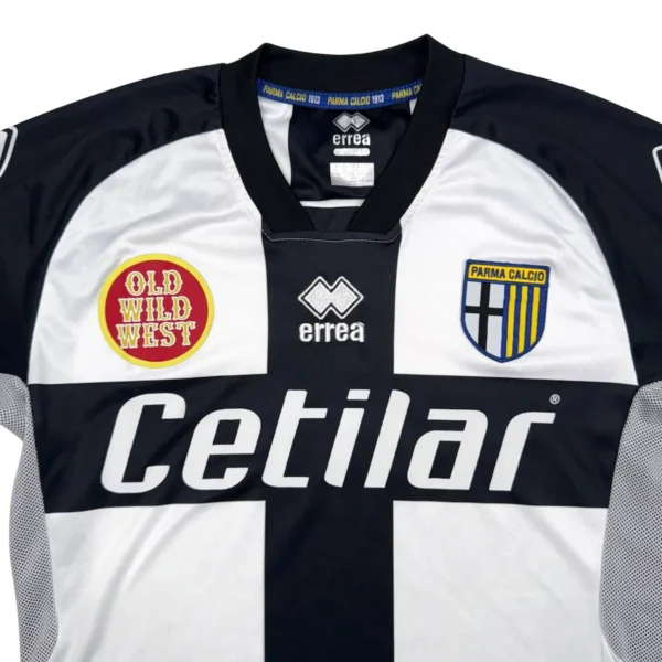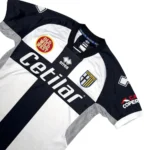 Note IFS : 9/10 – Excellente condition pour ce maillot de Parme signé Errea. Le patch Serie A a été retiré, mais l’écusson brodé du club est intact. Une pièce sobre, propre, avec tout le charme du foot italien. Sobre et original !