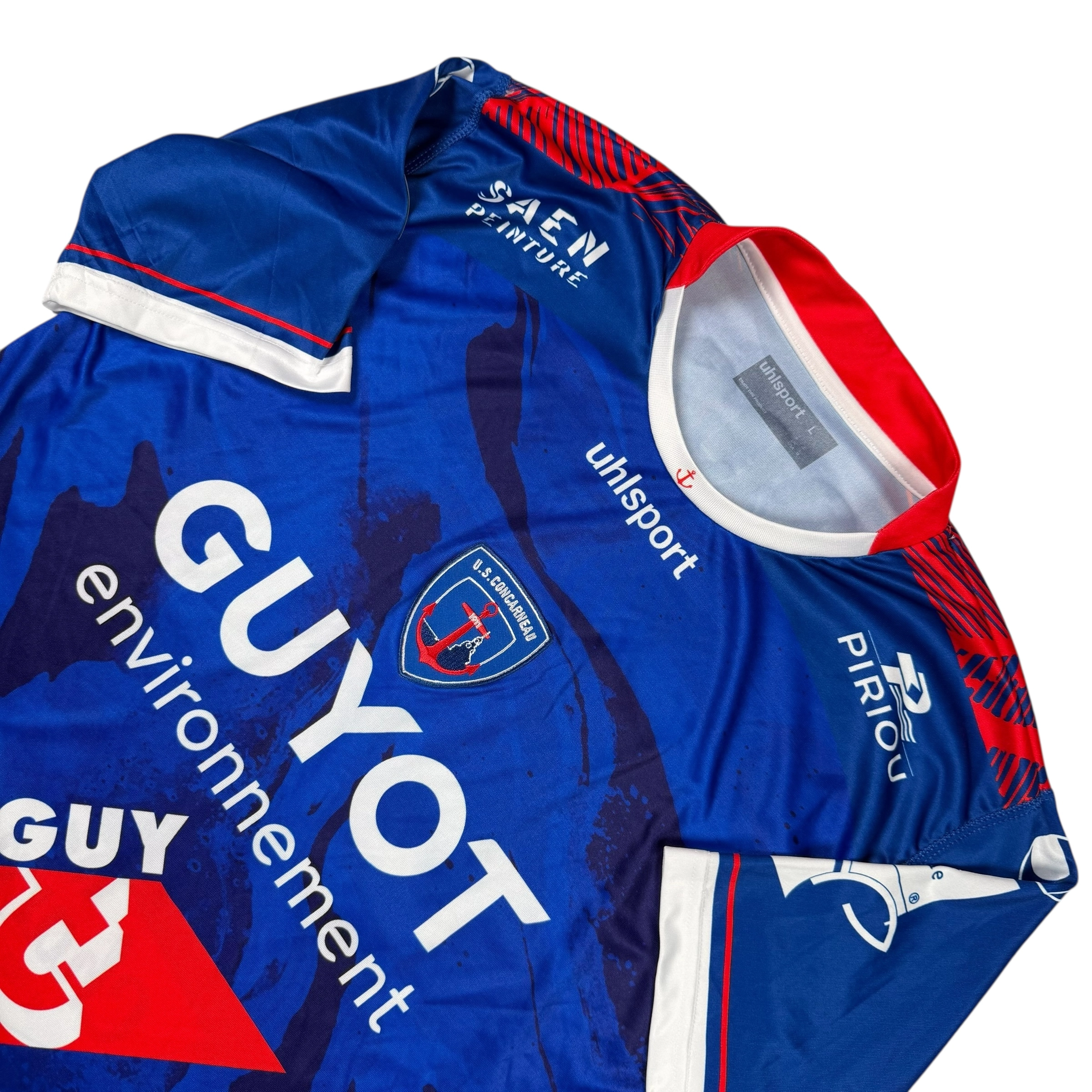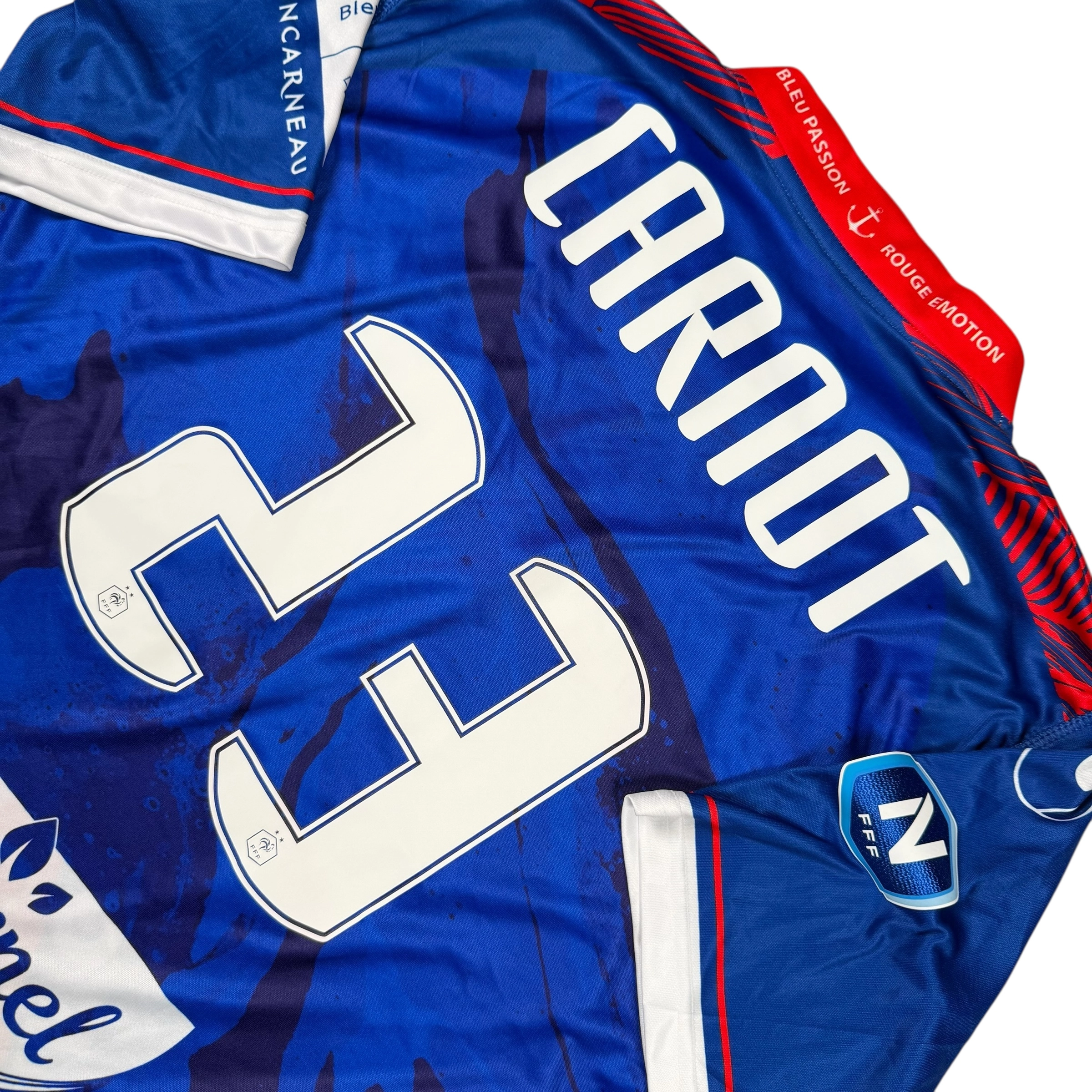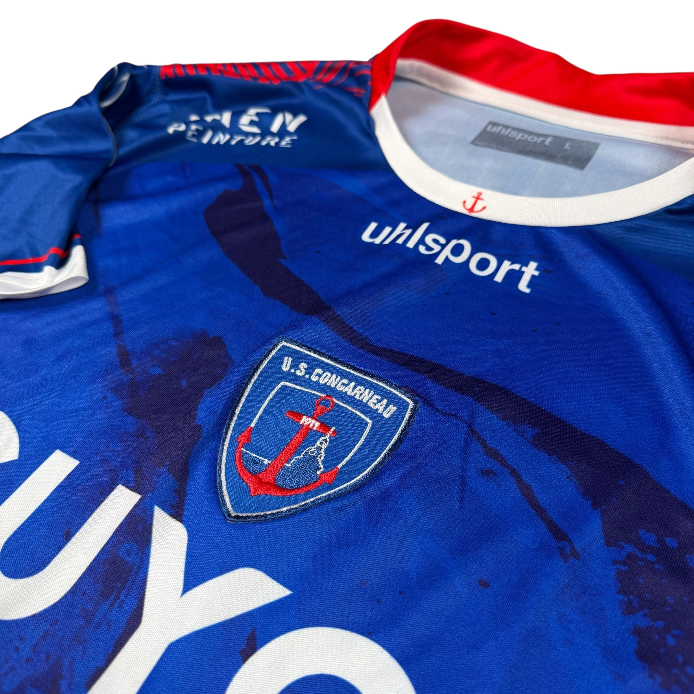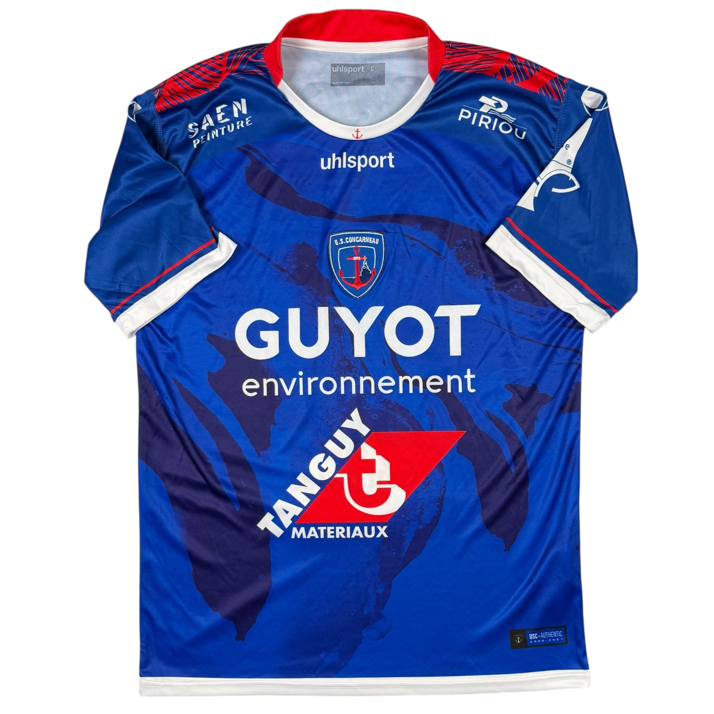Note IFS : 10/10 – Maillot de US Concarneau préparé et/ou possiblement porté par Louis Carnot, milieu français prêté au club lors de la saison 2020-2021 par l’EA Guingamp, période durant laquelle l’USC évoluait en Championnat National. Ce maillot arbore le patch National sur la manche et un design inspiré par la mer et l’identité maritime de Concarneau, reflet de l’attachement du club à sa région. Pièce authentique qui sort de l’ordinaire pour les amateurs de maillots liés aux clubs historiques du football français.