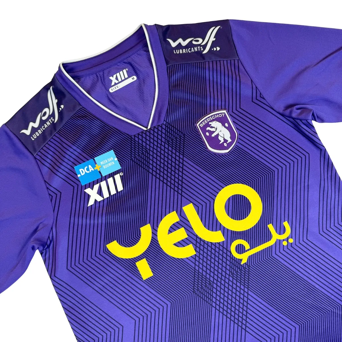 Note IFS : 10/10 – Parfaite condition pour ce maillot de Beerschot qui est peu commun. La couleur mauve traditionnelle du club est respectée !