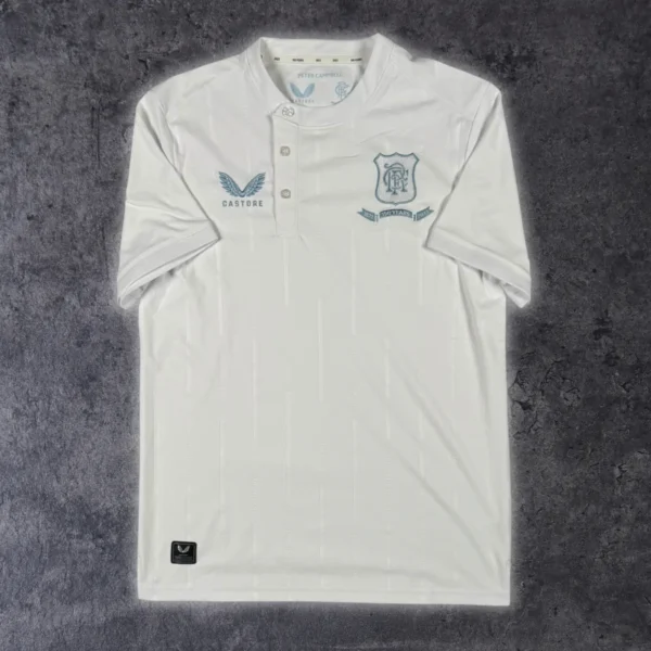 Note IFS : 10/10 – Parfaite condition pour ce quatrième maillot des Rangers. Un maillot qui célèbre les 150 ans du club emblématique de Glasgow.