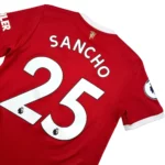 Note IFS : 8/10 – Maillot authentique Adidas en bon état général, quelques bouloches et fils tirés sont à noter (voir photos). Patch Premier League sur la manche. Le flocage officiel de Jadon Sancho est comme neuf !