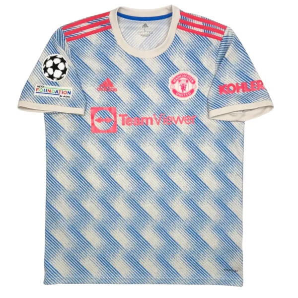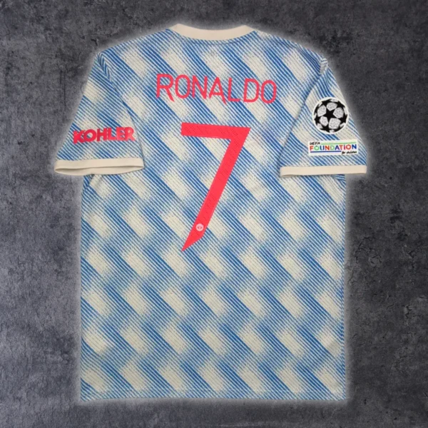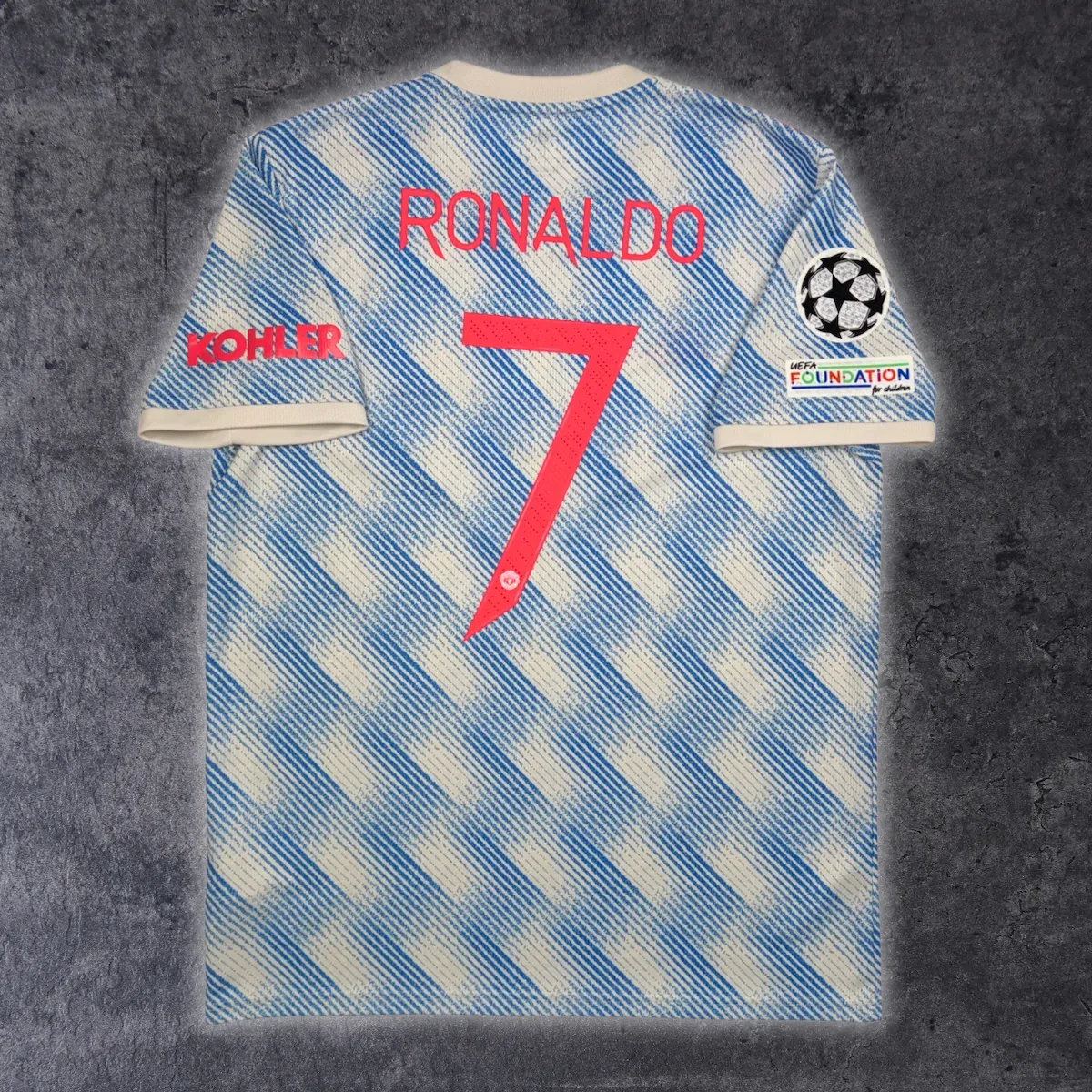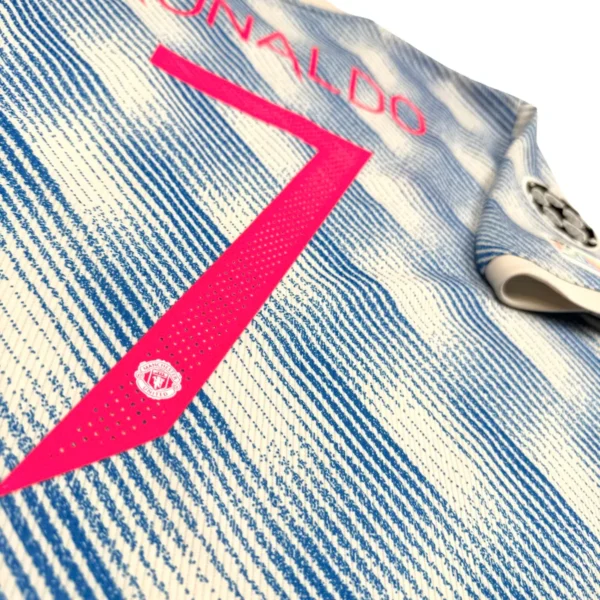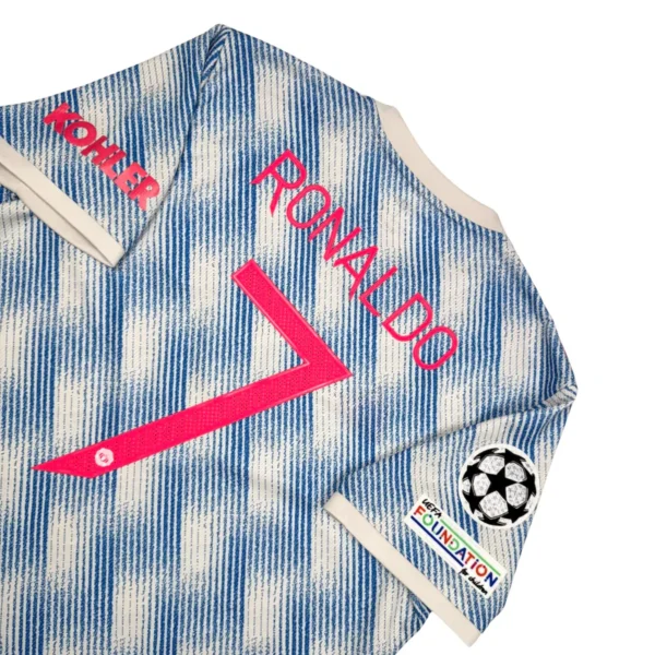 Note IFS : 9/10 – Excellent, le blanc a perdu de son éclat (voir photos). Superbe design par Adidas qui sort des sentiers battus, on voit clairement l’inspiration tirée du fameux « Snowflakes » de 90-92 ! Il s’agit du flocage version coupe (FA Cup et Champions League).