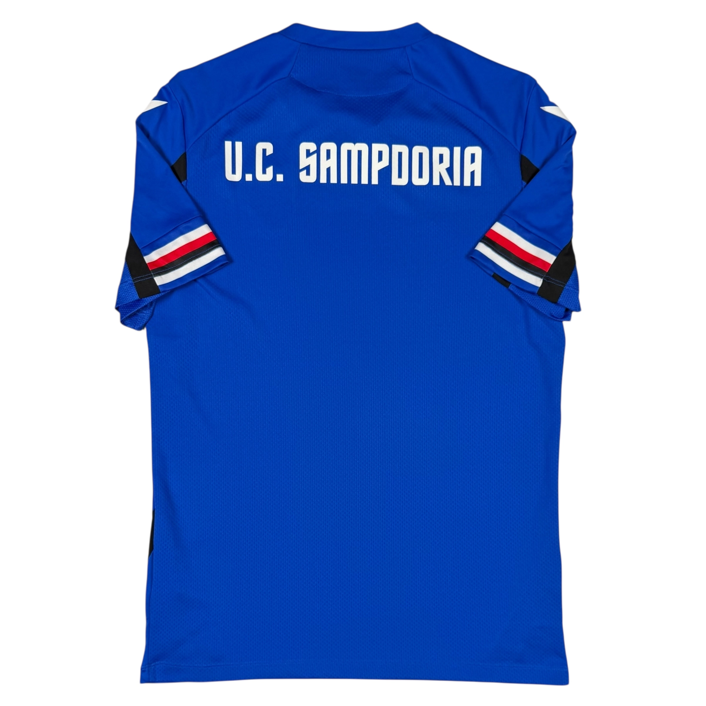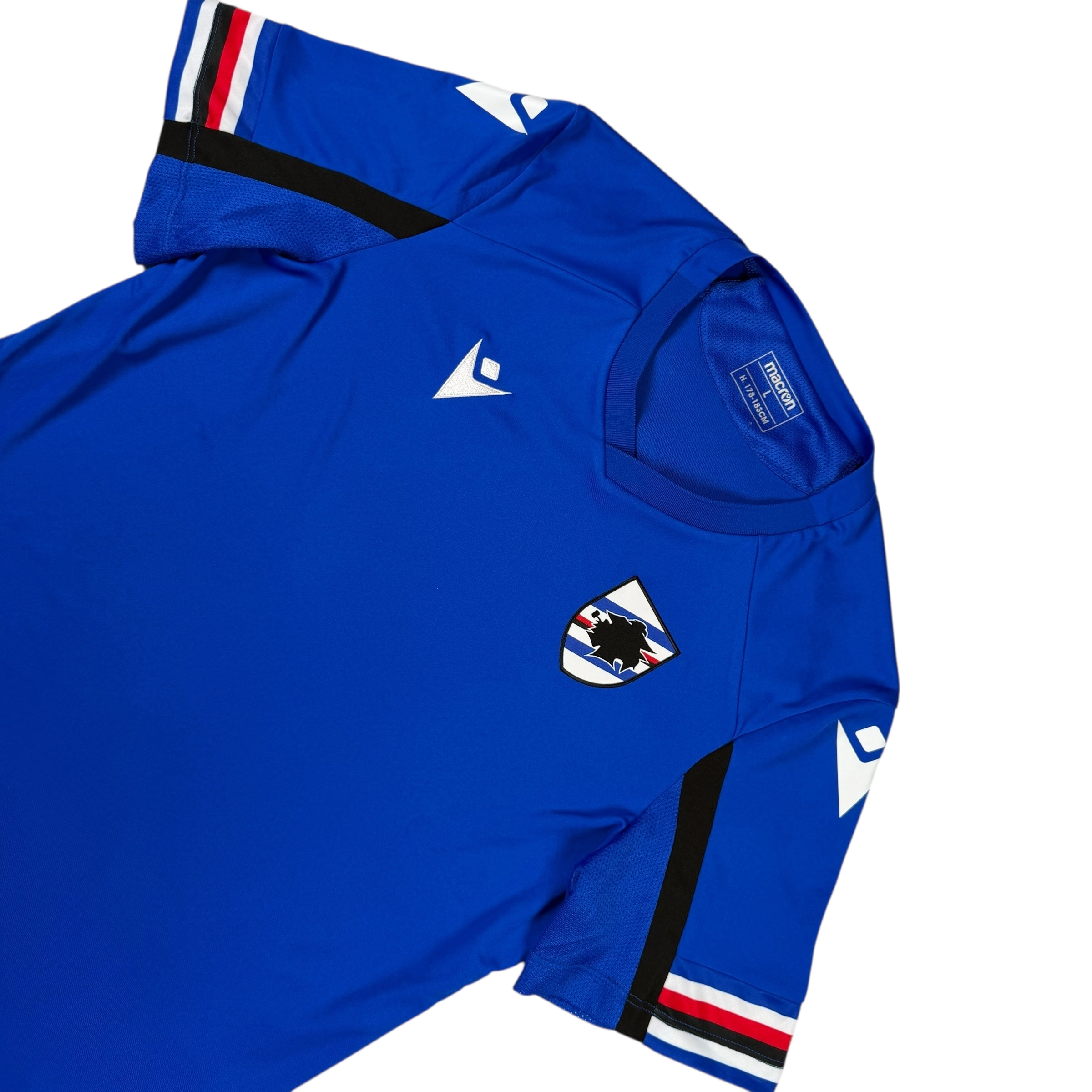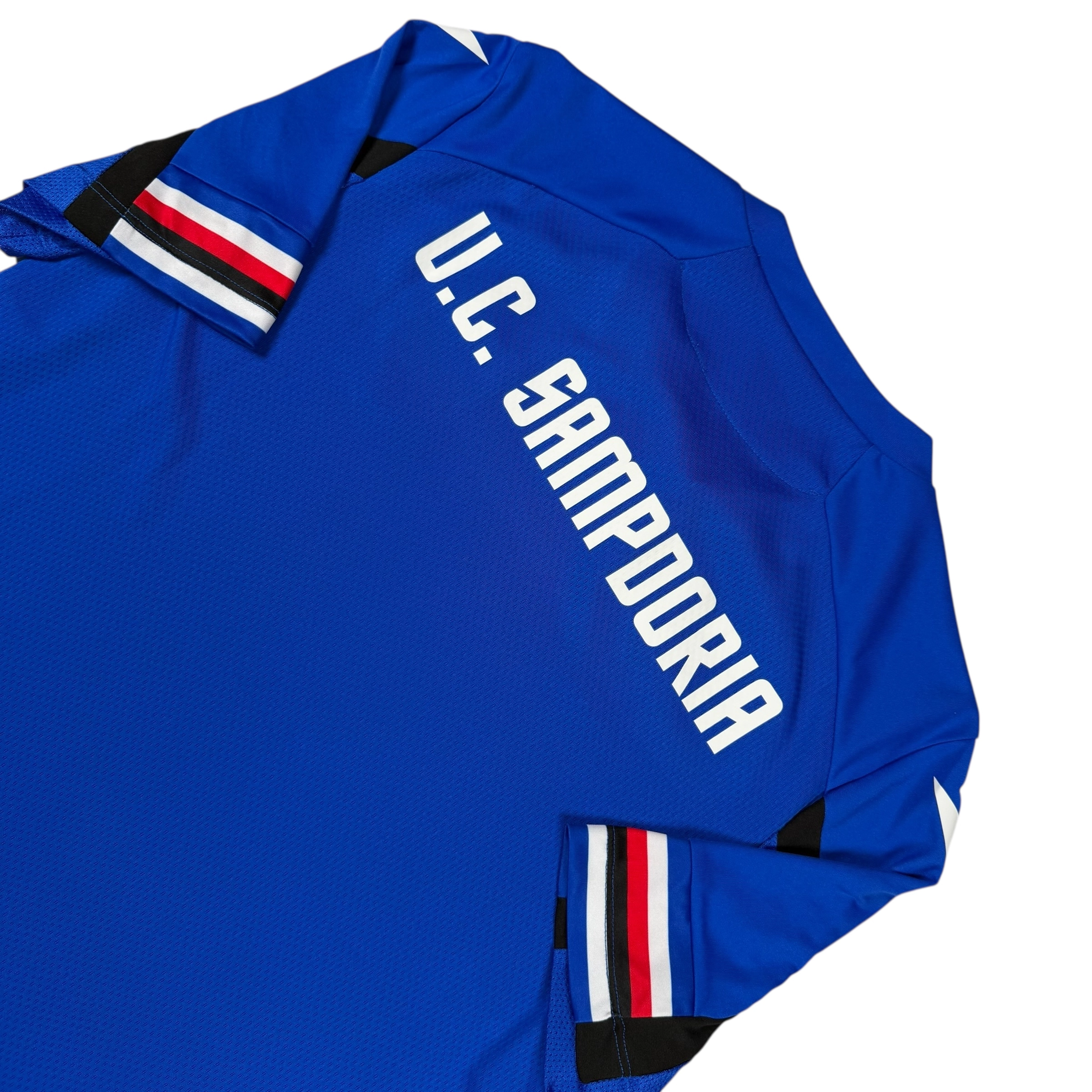 Note IFS : 10/10 – Parfaite condition pour ce maillot d’entrainement de la Samp’. Fabriqué par l’équipementier italien Macron.