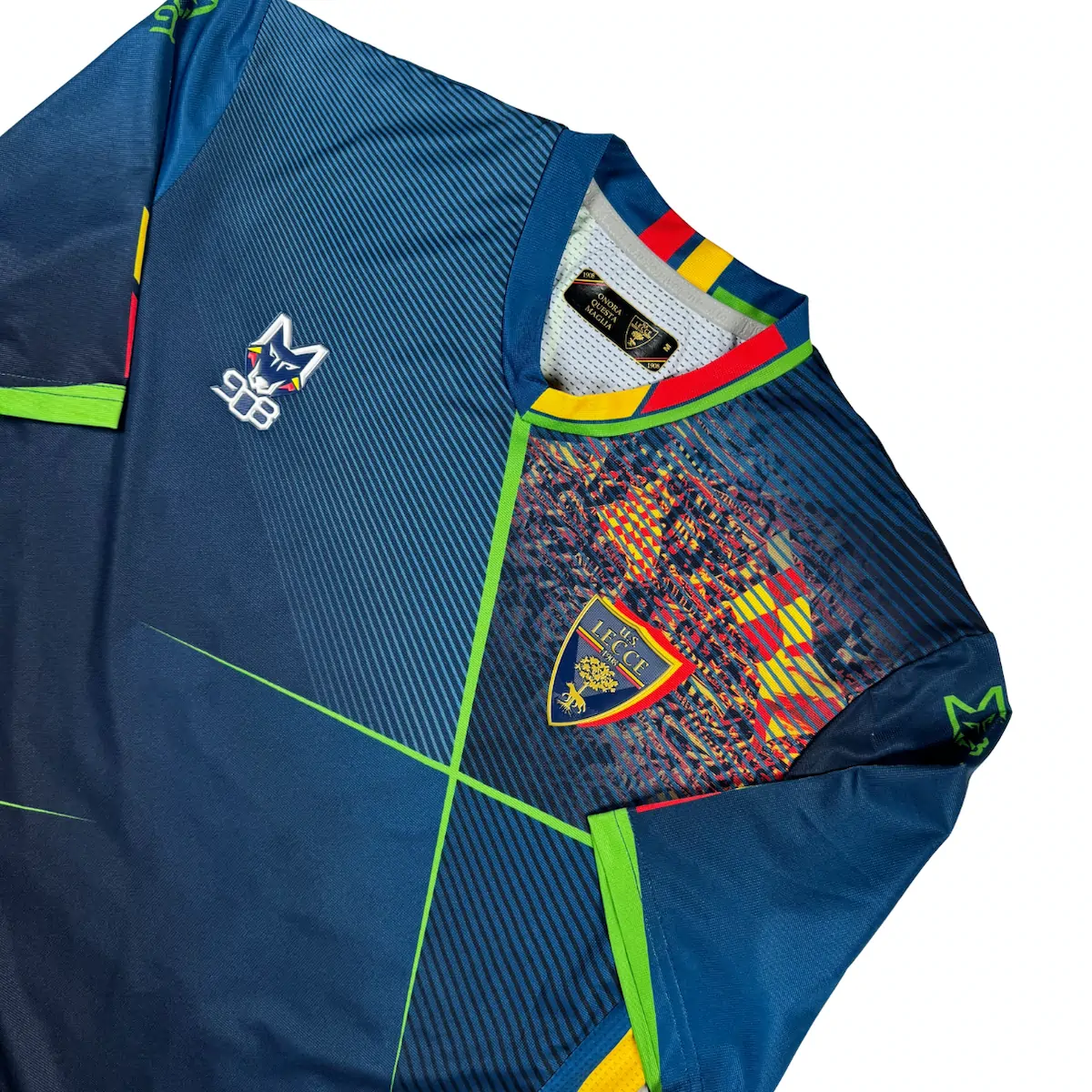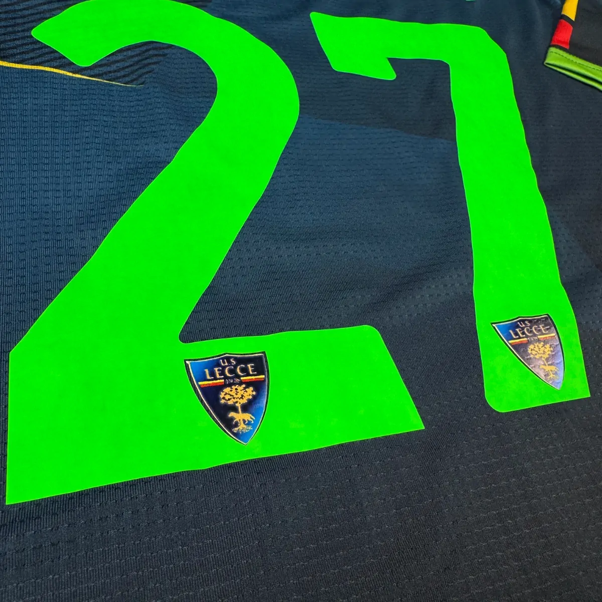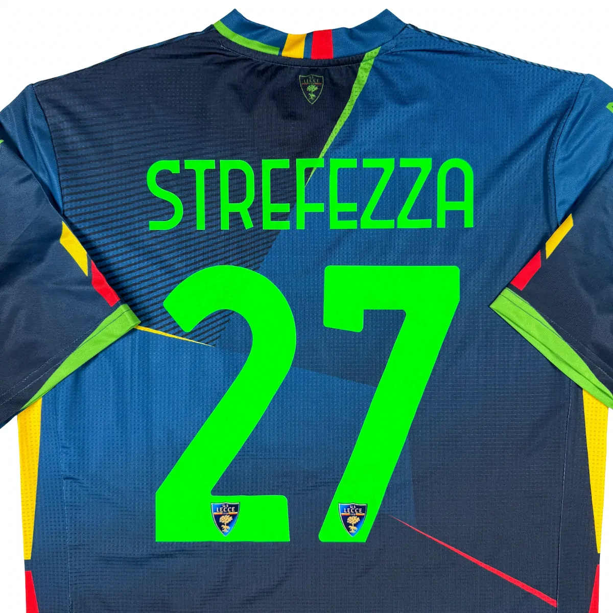 Note IFS : 10/10 – Le maillot U.S. Lecce 2021-22 Third est signé par la marque italienne M908, la ligne d’équipement “in-house” du club. Superbe clin d’œil au design avec un visuel des supporters imprimé sur le haut du maillot. Floqué Strefezza 27, en référence à Gabriel Strefezza, ailier brésilien explosif et l’un des joueurs clés du club cette saison-là, auteur d’une saison remarquée en Serie B.