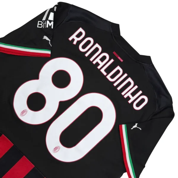 Note IFS : 10/10 – Parfaite condition pour ce maillot domicile de l’AC Milan par Puma. Flocage (officiel) en hommage à Ronaldinho.