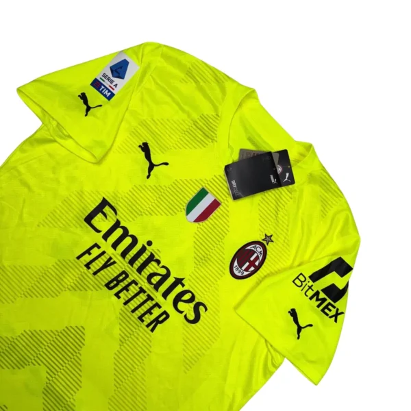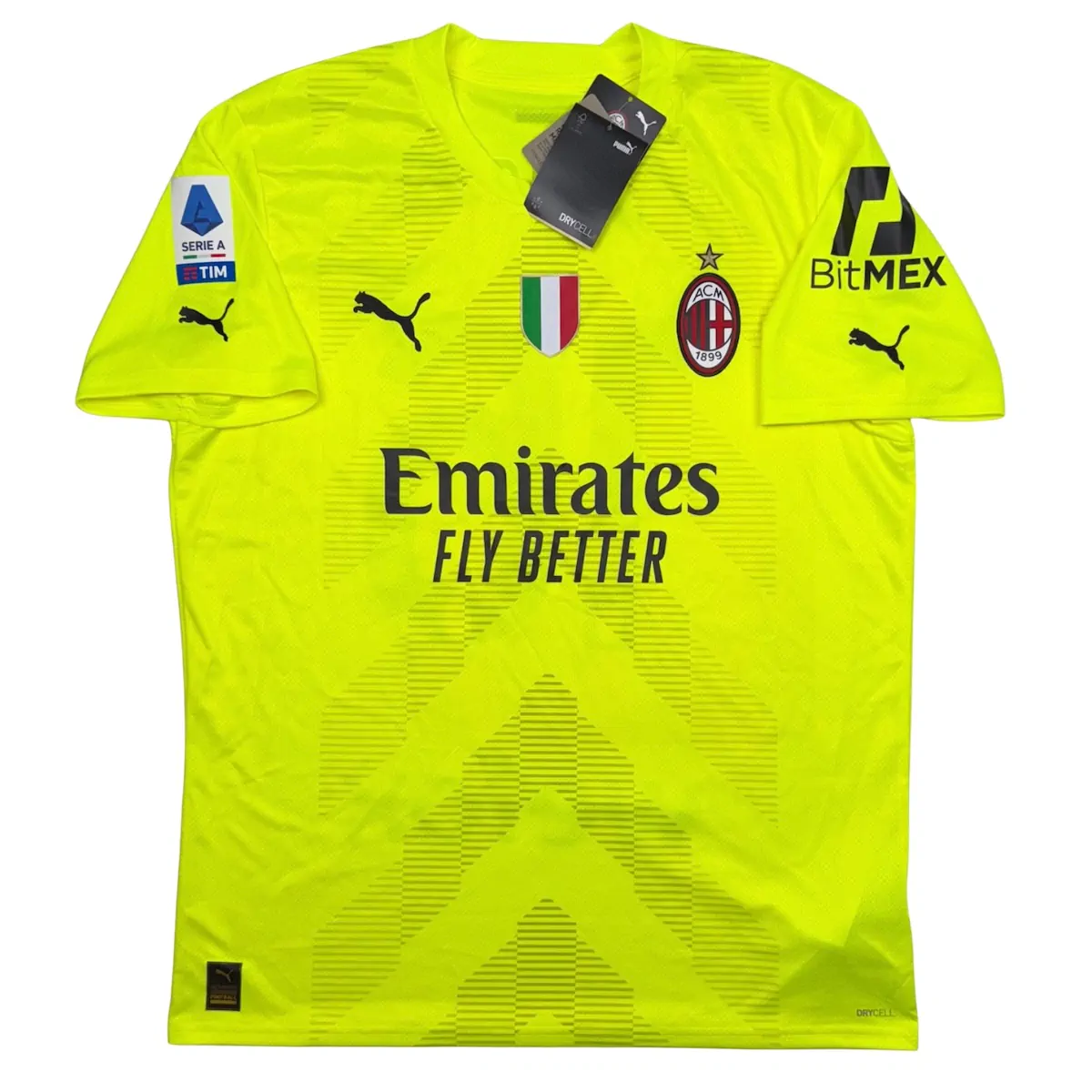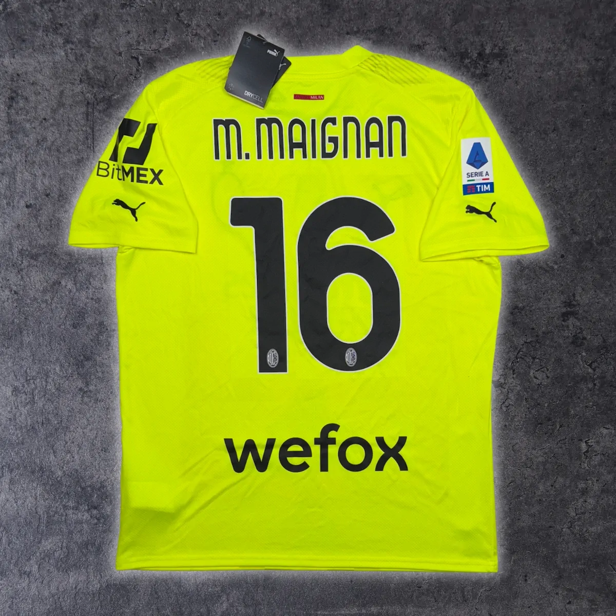 Note IFS : Neuf + étiquettes – Patch Serie A sur la manche, Scudetto sur le torse, flocage officiel de Mike Maignan au dos : une config’ 100 % italienne comme on les aime. Le tout en état neuf, un superbe maillot de gardien qui sort de l’ordinaire, loin des classiques domicile et extérieur qu’on voit partout. Une vraie pièce originale à ajouter à ta collection !