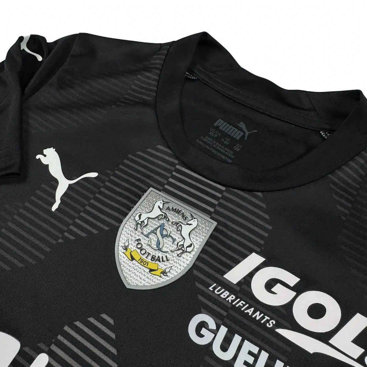 Note IFS : 9/10 – Excellente condition pour ce maillot extérieur d’Amiens, au design noir et blanc sobre mais terriblement efficace. Une pièce clean, élégante et bien conservée, à l’image du club picard. Taille 7-8 ans.