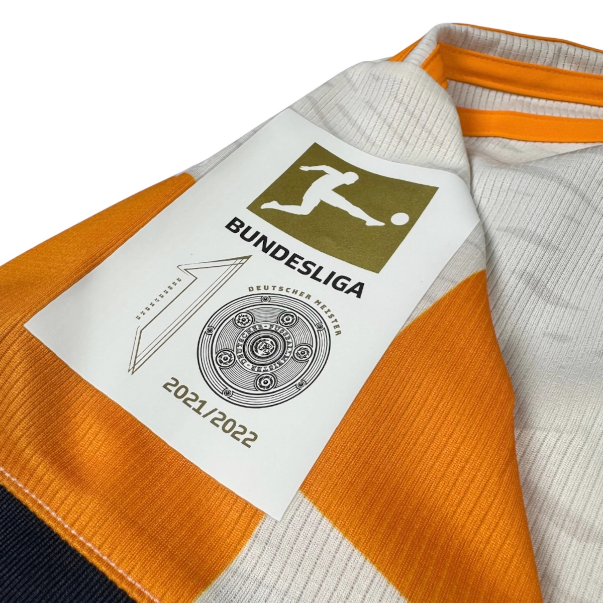 Note IFS : Neuf + étiquettes – Quatrième maillot du Bayern Munich saison 2022-2023, pensé comme un vrai hommage au Stade Olympique de Munich pour ses 50 ans, l’ancien stade mythique du club entre 1972 et 2005. Le design reprend subtilement la structure du toit du stade dans le textile, avec une base claire et des touches de couleurs inspirées des Jeux Olympiques de 1972, le tout accompagné de logos Adidas et Bayern centrés et brodés qui donnent un vrai côté rétro moderne. Au dos, le flocage de Sané toujours en hommage à l’ancien stade, les détails sont dingues. Un maillot à porter en faisant attention juste pour flex ou à collectionner !
