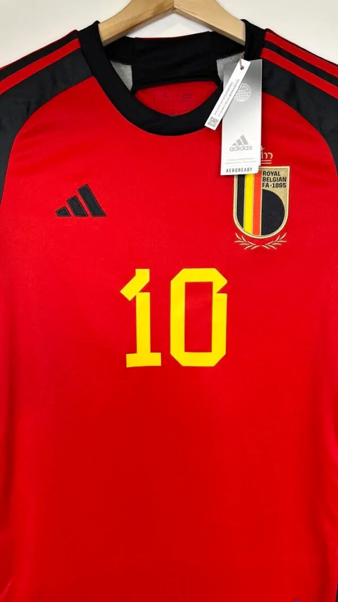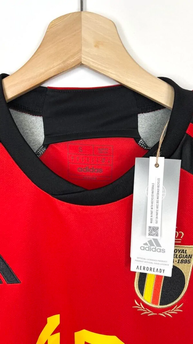 Note IFS : Neuf + étiquettes – Superbe maillot tout neuf (SlimFit, taille un peu cintrée). Á noter le flocage qui ne semble pas officiel bien qu’il soit parfaitement posé par le magasin auquel nous l’avons récupéré. Le prix est donc adapté en conséquence. Les fameuses flammes sur les manches ont fait couler beaucoup d’encre, qu’on aime ou pas, c’est atypique et unique ! Le dernier maillot d’Eden avec les Diables.