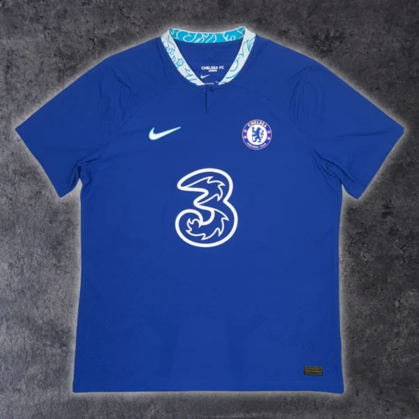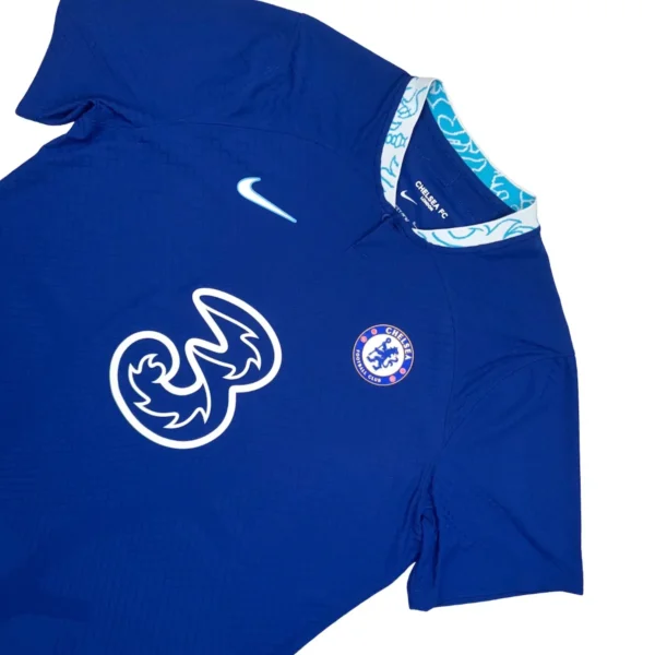 Note IFS : 10/10 – Parfaite condition pour ce maillot domicile de Chelsea en version player, identique à celui porté par les pros en match. Nike Swoosh et écusson thermocollés, coupe ajustée et finitions haut de gamme. Vendu 150 € lors de sa sortie.