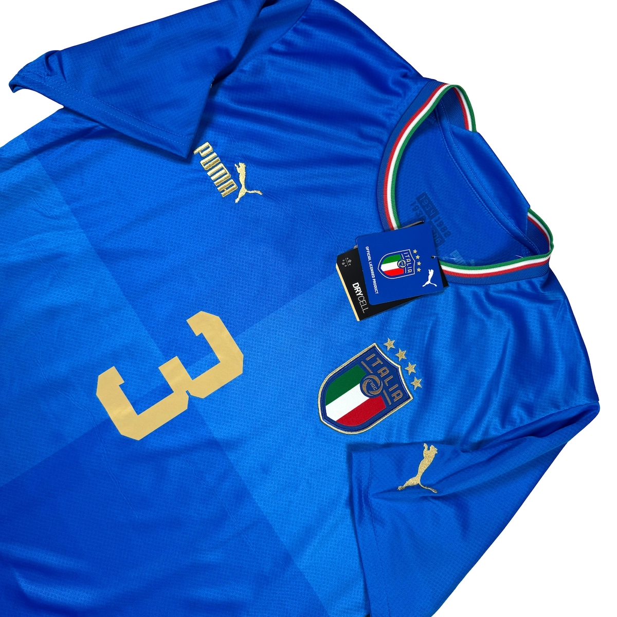 Note IFS : Neuf + étiquettes – Maillot tout neuf avec ses étiquettes d’origine de la Squadra Azzurra signé Puma, un modèle qui respecte parfaitement les traditions et les couleurs emblématiques de la sélection italienne. Flocage Giorgio Chiellini, véritable légende de la Nazionale, pour une pièce à la fois élégante, intemporelle et ultra symbolique, idéale pour les collectionneurs comme pour les fans de football italien.