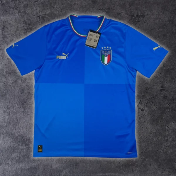 Note IFS : Neuf + étiquettes – Petits fils tirés au dos dus au stockage. Maillot de la Squadra Azzurra par Puma qui respecte les traditions et couleurs de la nation italienne.